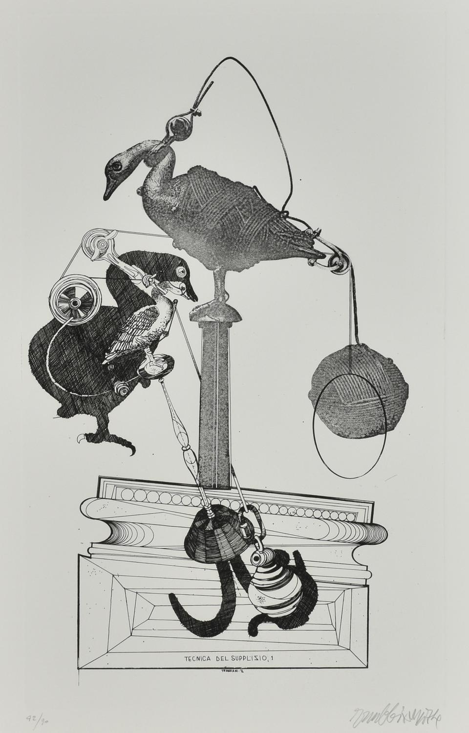 - TECNICA DEL SUPPLIZIO 1, acquaforte su carta, battuta cm 50x29; es. 42/90; firma