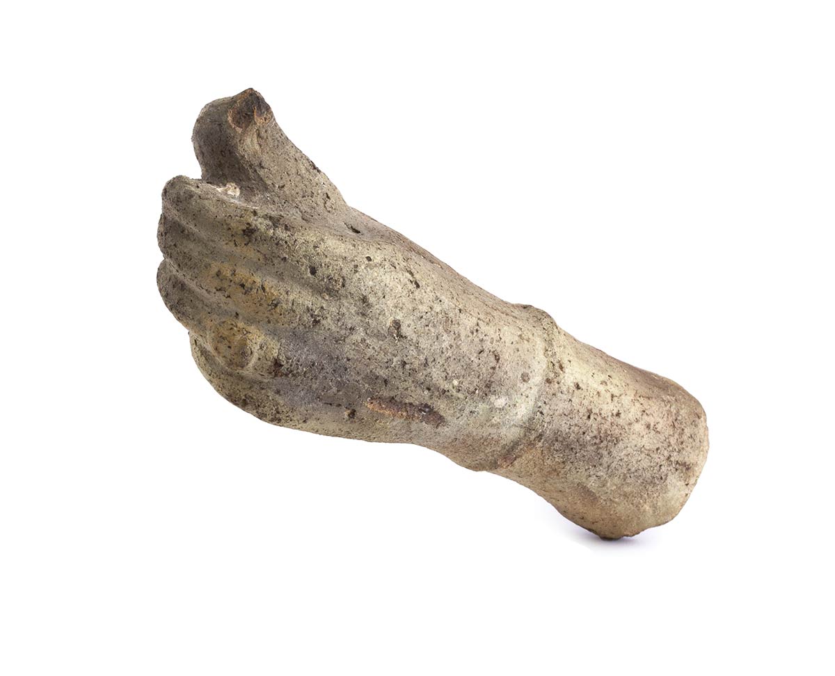MANO IN TERRACOTTA DI OFFERENTE CHE DONA UNA COLOMBA