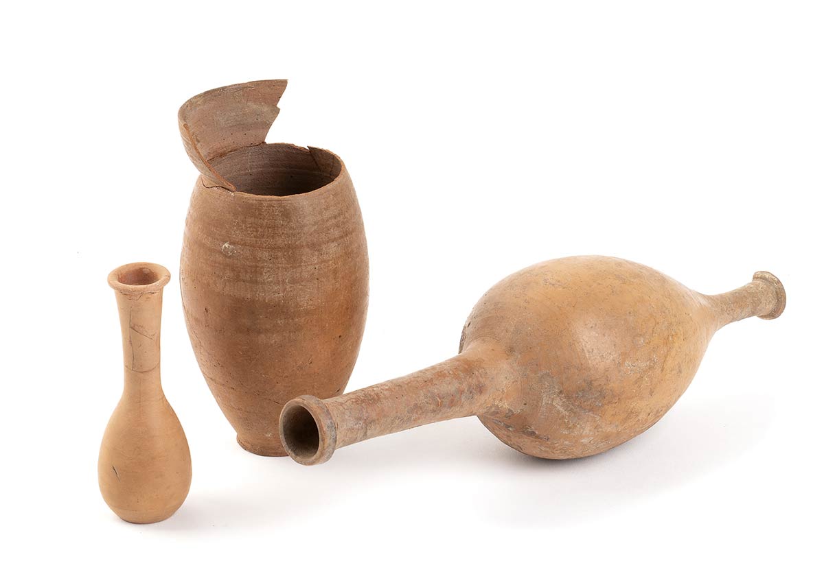 GRUPPO DI DUE UNGUENTARI E UN BICCHIERE A PARETI SOTTILI<br>I secolo a.C.