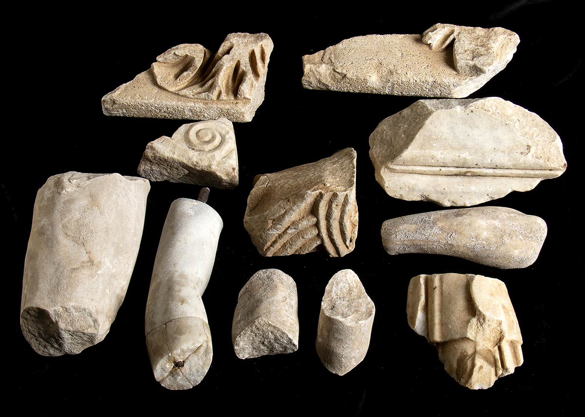 GRUPPO DI UNDICI ELEMENTI MARMOREI ROMANI E BIZANTINI<br>I - VII secolo d.C.