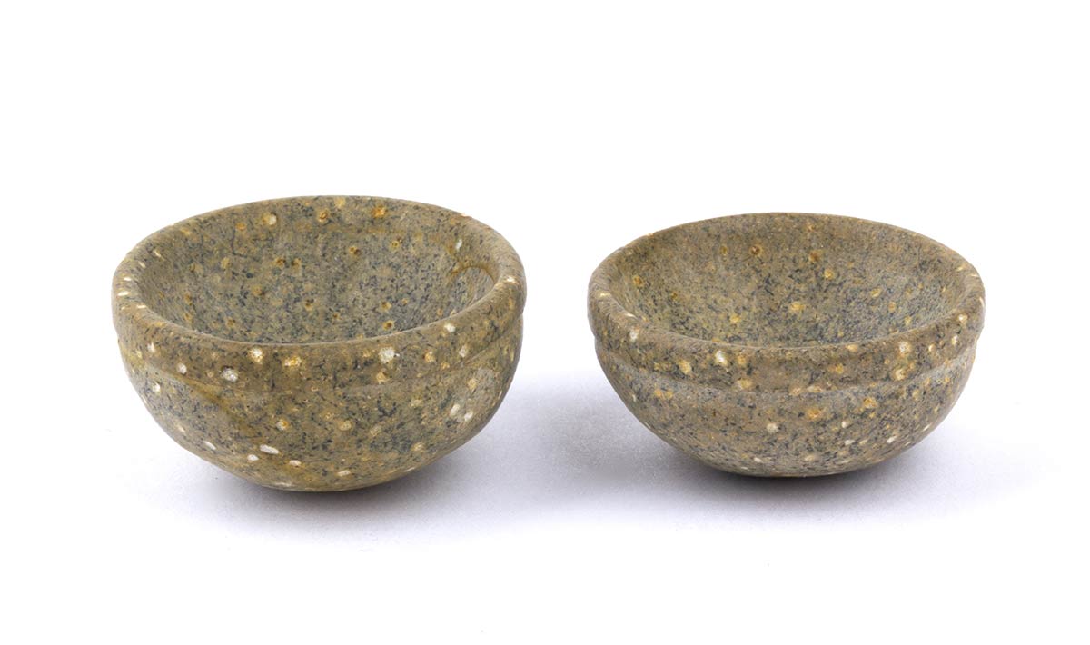 COPPIA DI COPPETTE PORTA UNGUENTI IN SCISTO<br>Mesopotamia, II - I millennio a.C.