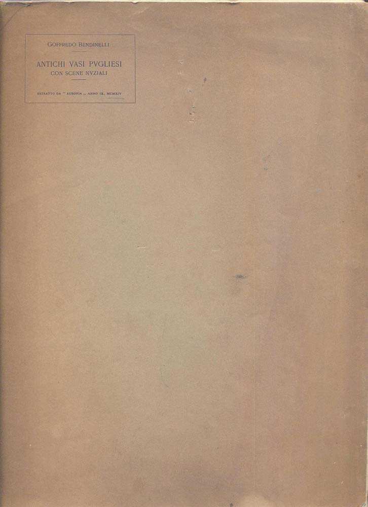 BENDINELLI G. - Antichi vasi pugliesi con scene nunziali. Roma, 1914. pp. 185 - 210, tavv. 1, + ill. nel testo. brossura editoriale, sciupata, buono stato, molto raro e importante.