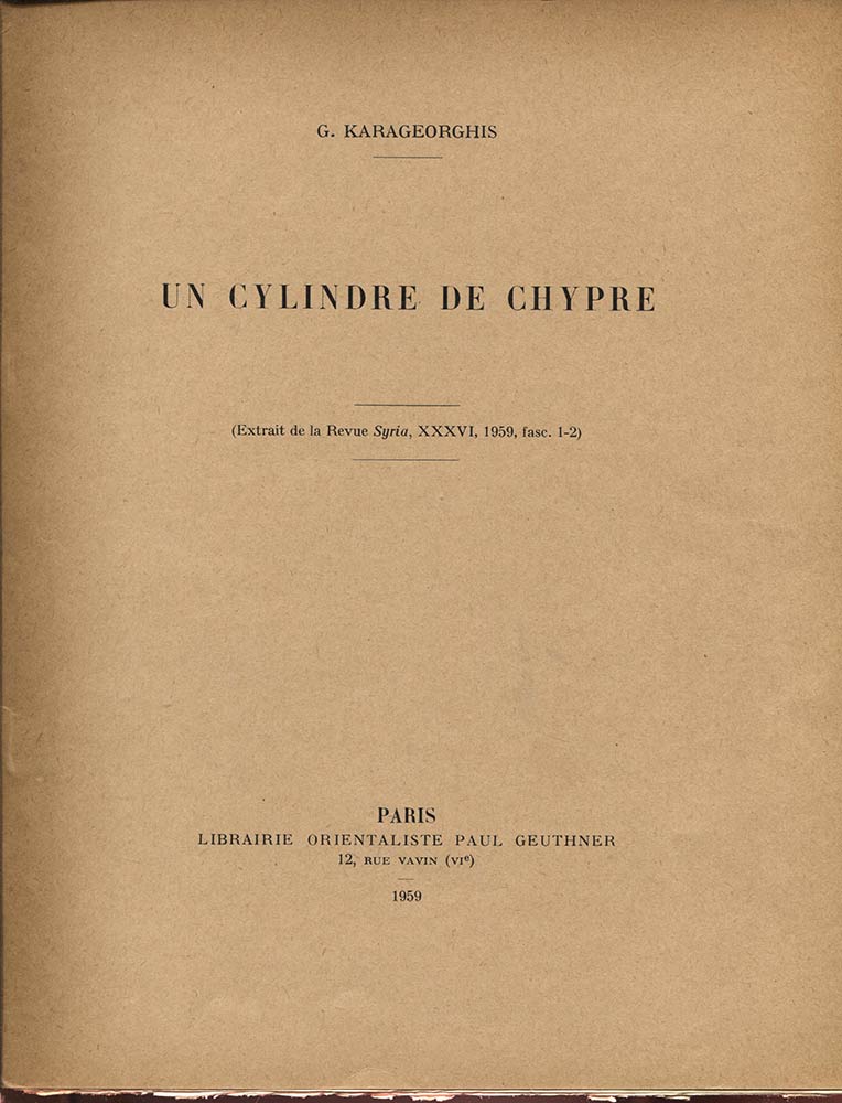 KARAGEORGHIS G. - Un cylindre de Chypre. Paris, 1959. Pp. 111 – 118, ill. nel testo. ril. ed buono stato.