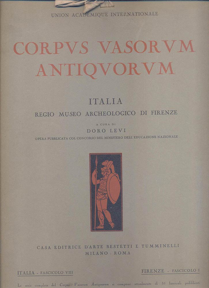 LEVI D. - Corpvs Vasorvum Antiqvorvm. Italia, Regio Museo Archeologico di Firenze. Fascicolo I. ( VIII per la serie italiana ) Roma. s.d. anni 30. pp. 87, tavv. 24 + 6. ril. editoriale, ottimo stato, raro e importante in ed. originale.