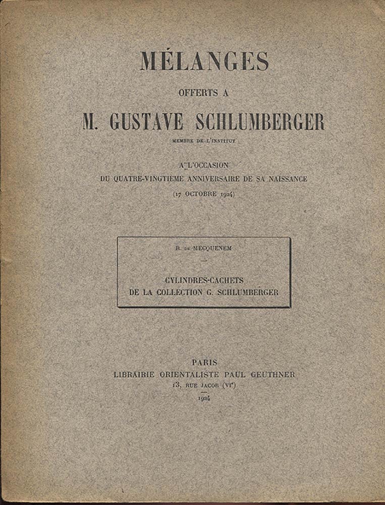Lot 256 | MECQQUENEM R. – Cylindres – cachets de la collection G. Schlumberger. Paris, 1924. Pp. 347 – 350, ill. nel testo. ril. ed. buono stato.