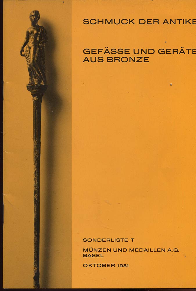 MUNZEN und MEDAILLEN A.G. Basel, 1981. Sonderliste T, Schmuck der antike, Gefasse und gerate aus bronze. Oktober, 1981. Pp, 48, nn. 125, tavv. 19. . ril. ed. buono stato, raro.