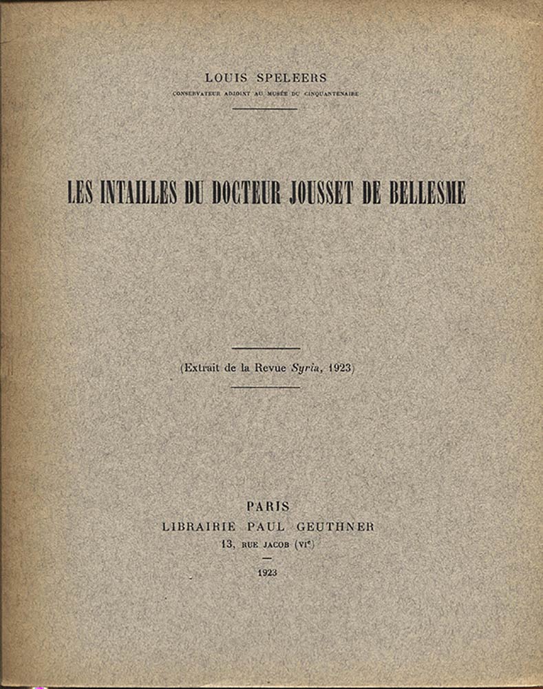 Lot 282 | SPELEERS L. – Les intailles du Docteur Jousset de Bellesme. Paris, 1923. Pp. 193 – 202, tavv. 1. Ril. ed. buono stato.
