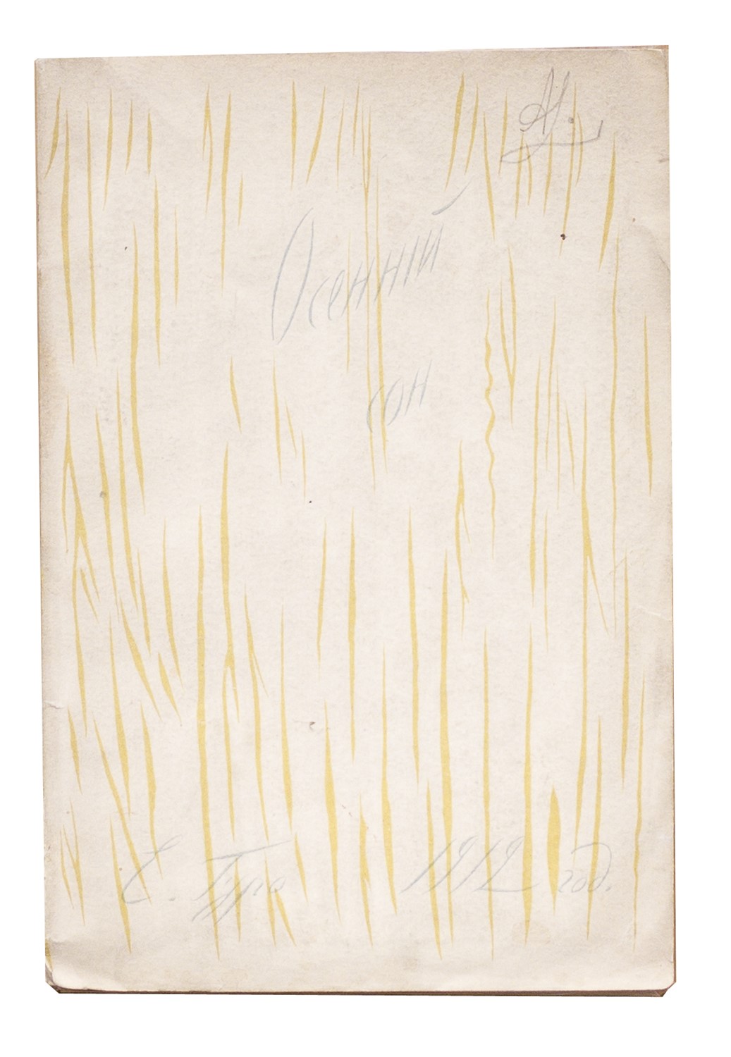 Osennij son. P’esa v vhetyrekh kartinakh (Sogno autunnale. Una commedia in quattro atti), San Pietroburgo, N. I. Butkovskaia, 1912; 19x13 cm., brossura, pp. 57-[5].