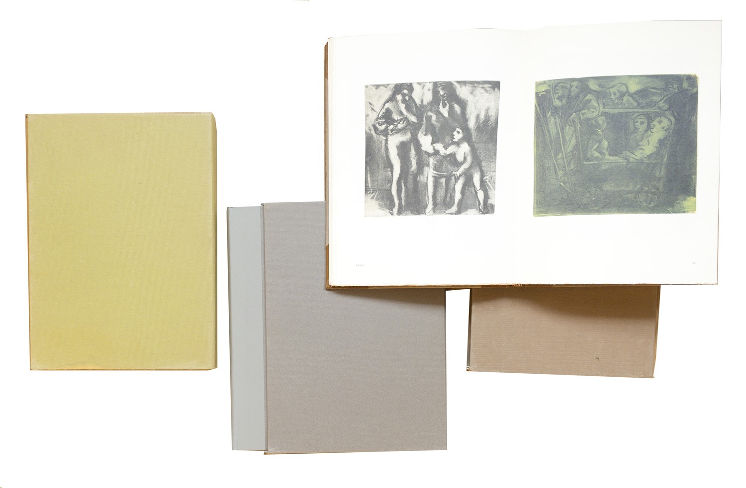 Esemplare nella tiratura di 120 esemplari con un’acquaforte originale numerata e firmata dall’artista.- Unito: FRANCESE Franco (Milano 1920 - Milano 1996) - TESTORI Giovanni (Novate Milanese 1923 - Milano 1993), Francese. Disegni giovanili. Digressione autobiografica di F. Francese 1932 - 1945, Oggiono (Como), Edizioni della Seggiola, 1983, 29x21,5 cm., legatura editoriale in mezza pelle, custodia, pp. 144 (4), 93 tavole a colori n.t. Esemplare nella tiratura di 140 con un’acquaforte originale numerata e firmata dall’artista. - Unito: GUARIENTI Carlo (Sant’Antonio di Treviso 1923) - BRIGANTI Giuliano, Guarienti. Disegni e Acquerelli, Oggiono (Como), Edizioni della Seggiola, 1984, 29x21,5 cm., legatura editoriale in mezza pelle, custodia, pp. 94 (6), 59 tavole a colori n.t. Esemplare nella tiratura dei 160 con un’acquaforte originale a un colore numerata e firmata dall’artista.