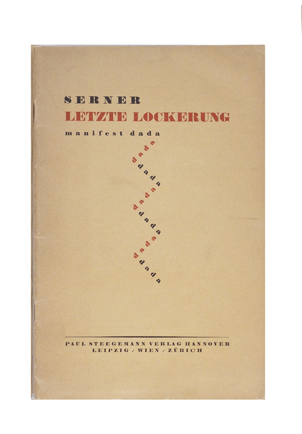 Letzte Lockerung. Manifest dada [Dissoluzione finale. Manifesto dada]Hannover, Paul Stegemann, 1920, 22,1x14,6 cm., brossura, pp. 45-[3].
