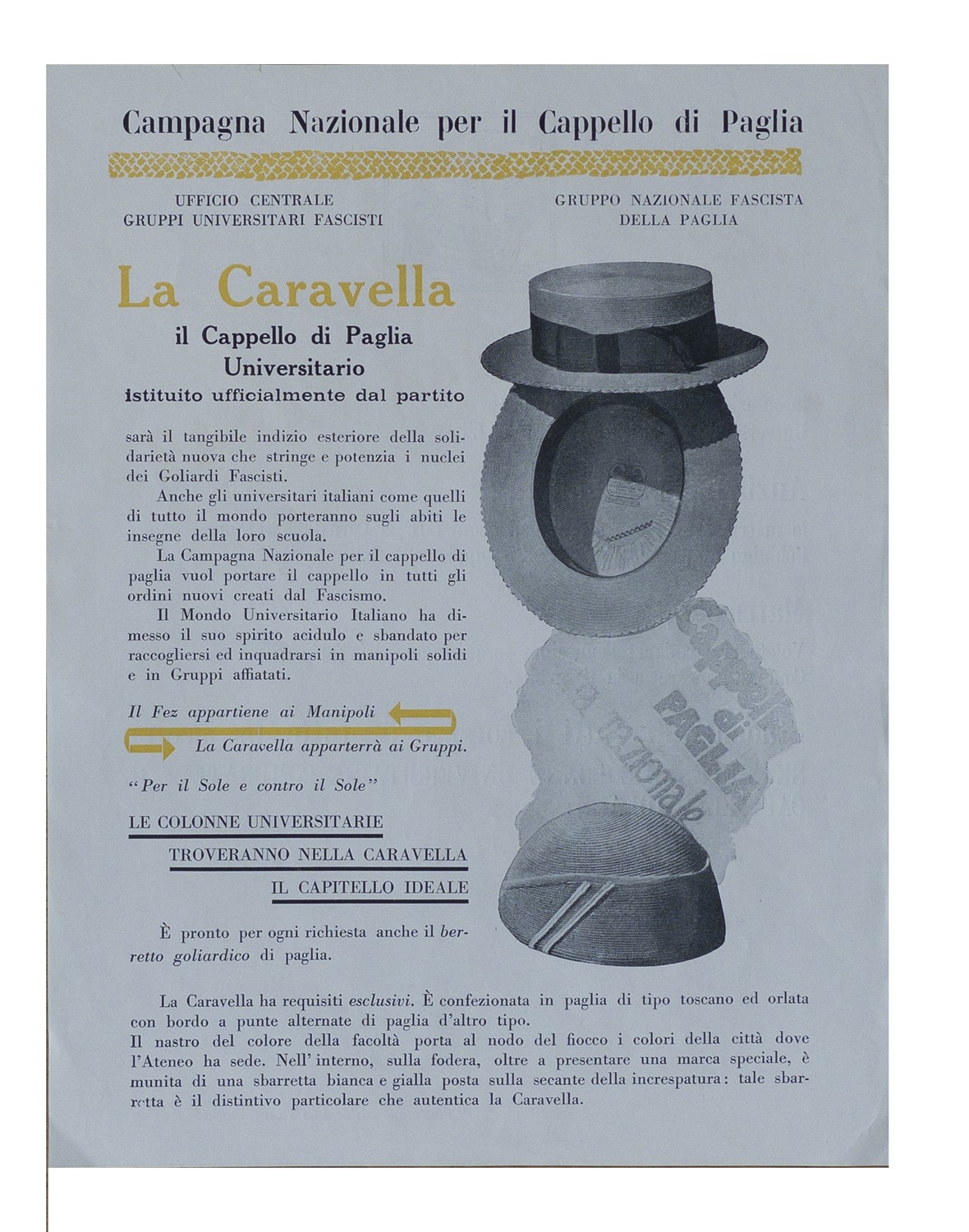 Campagna Nazionale per il Cappello di Paglia. La Caravella. Il Cappello di Paglia Universitario[Firenze], senza editore, [1928], 22x29 cm.