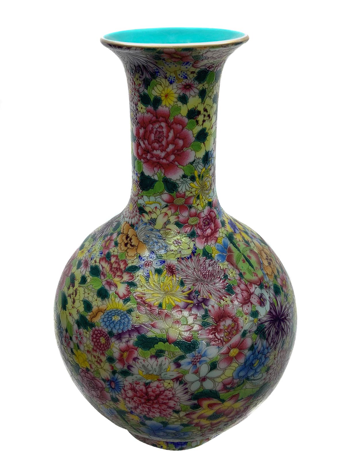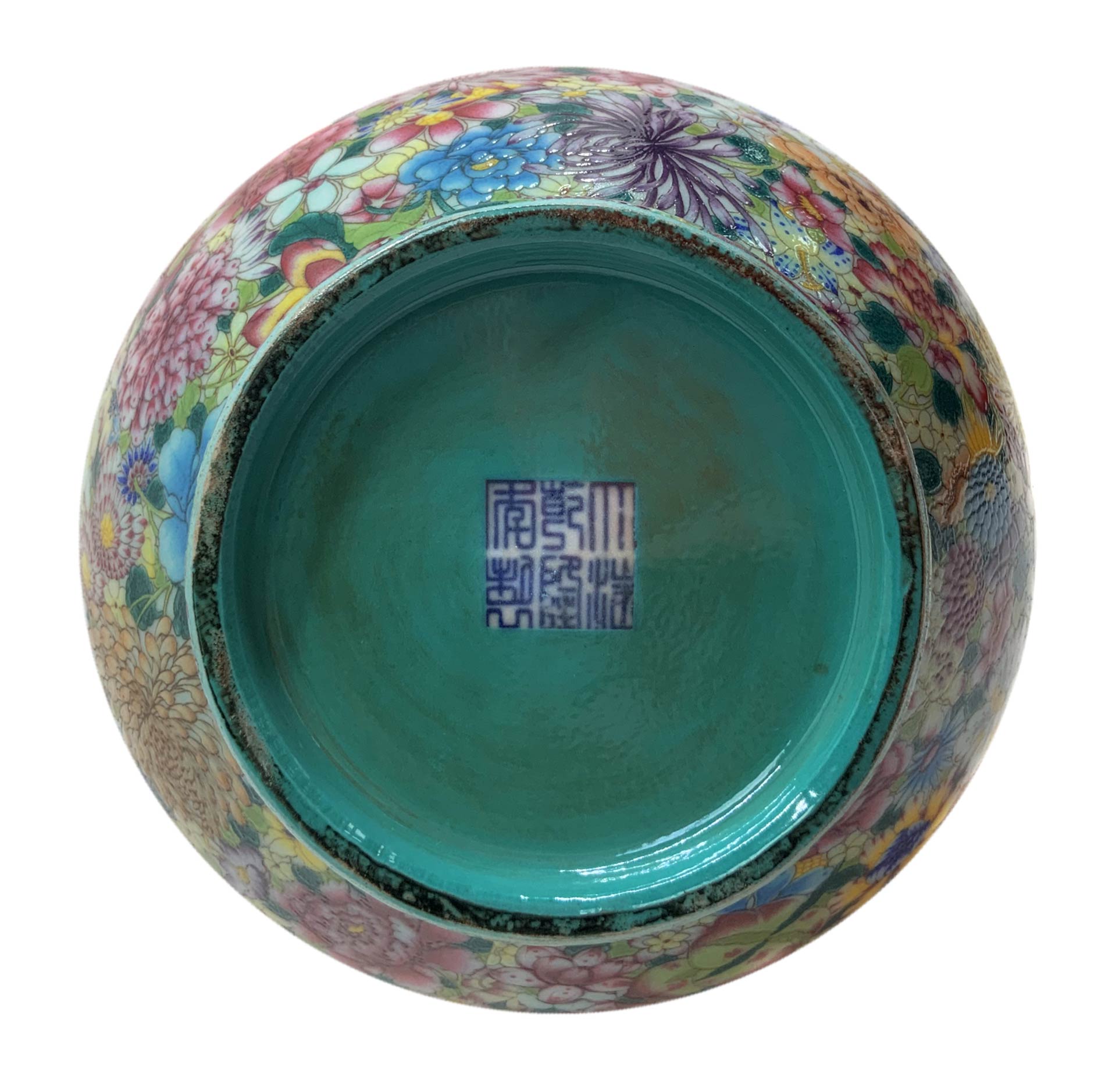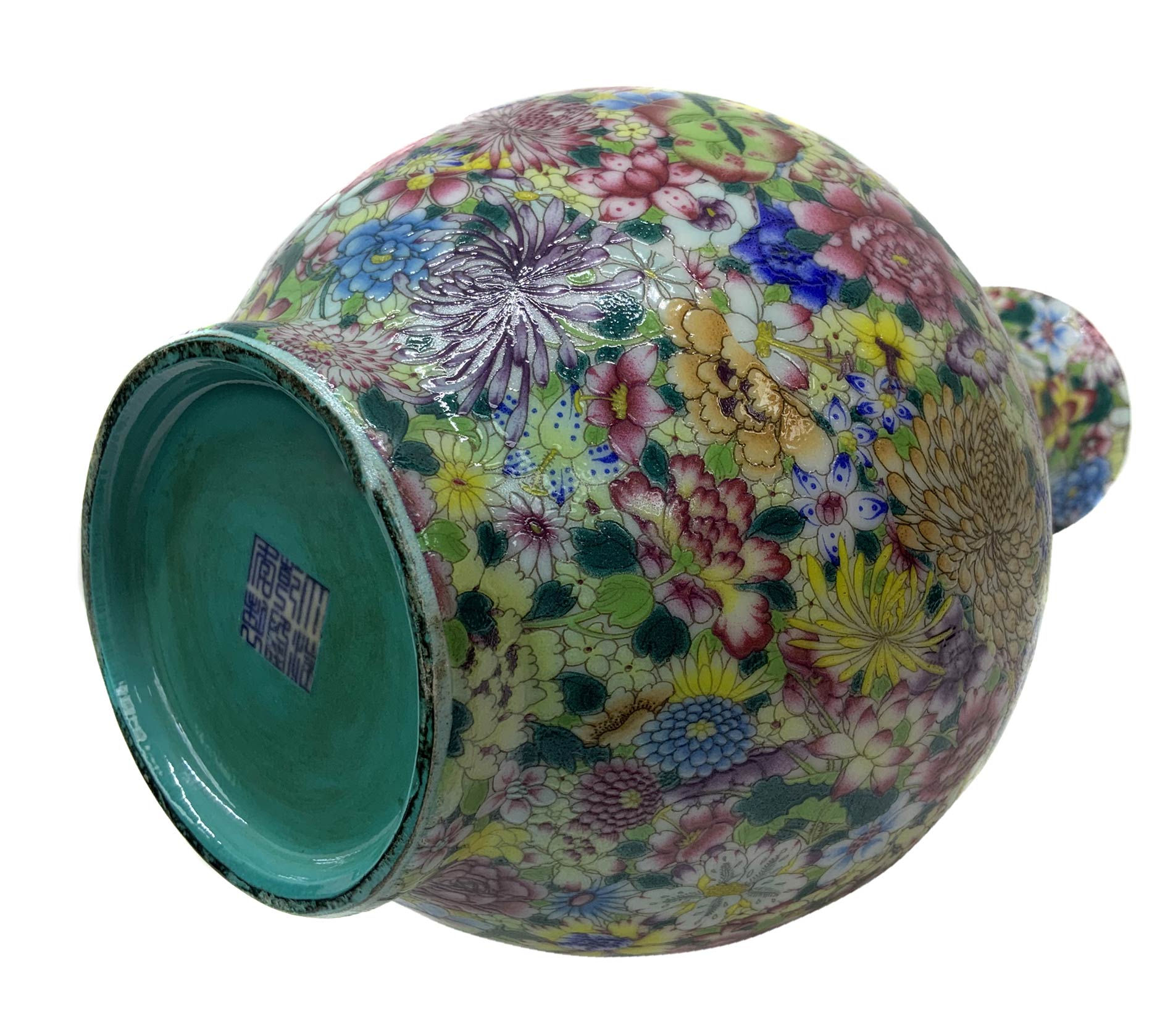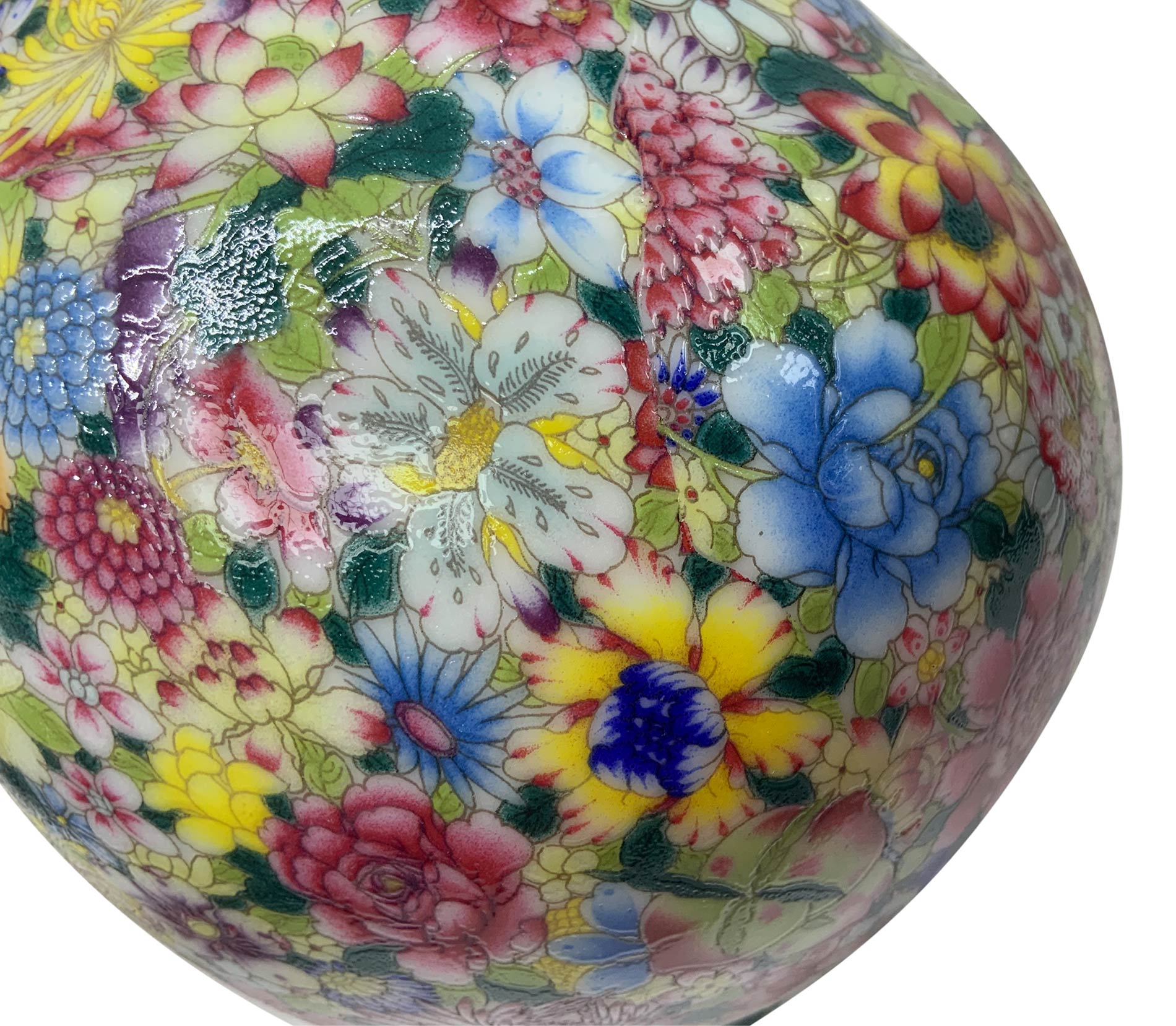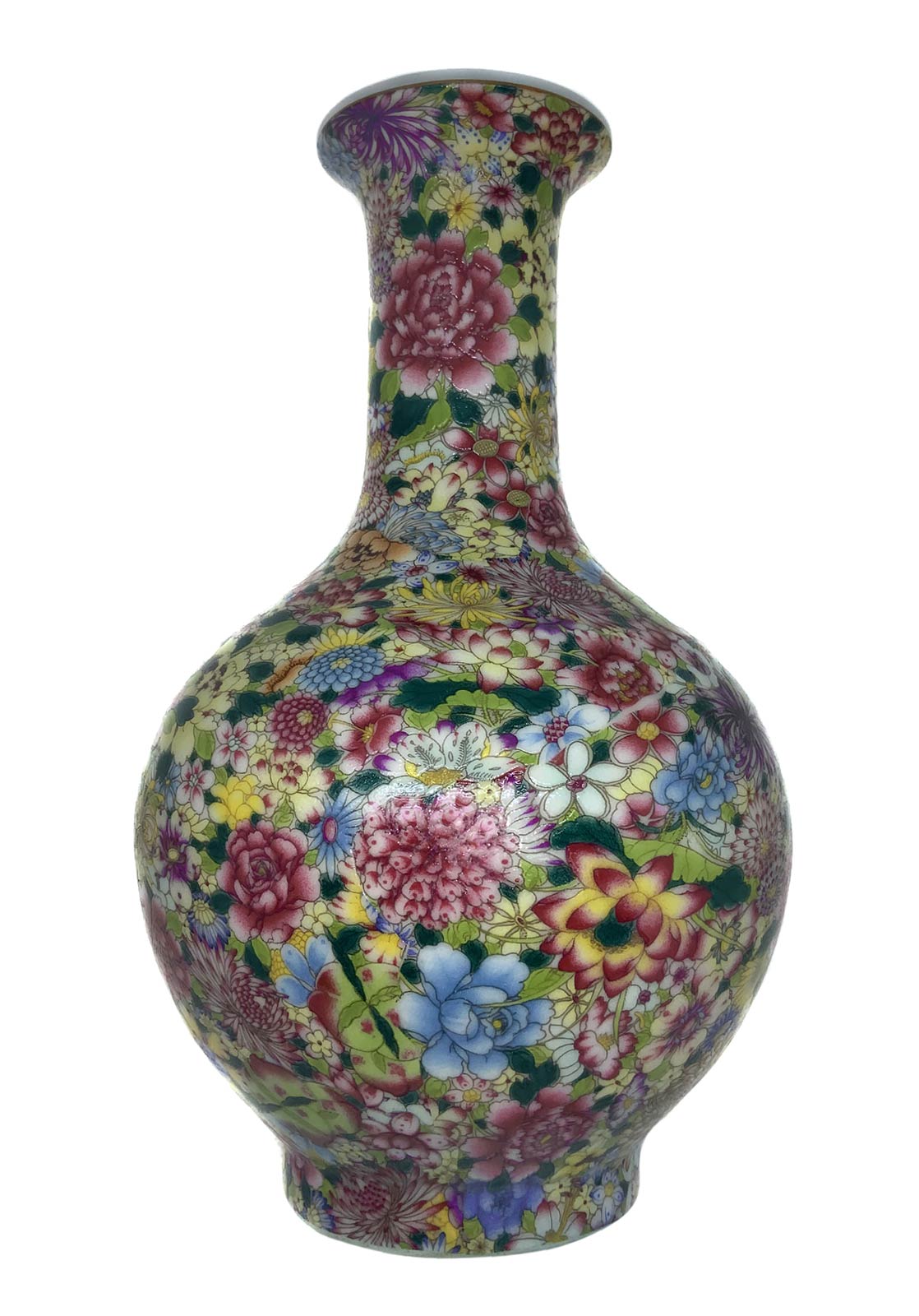 Vaso cinese in porcellana con decorazione “mille fiori”, Cina, XX secolo. Base con marchio apocrifo. Cm 23 x 14.