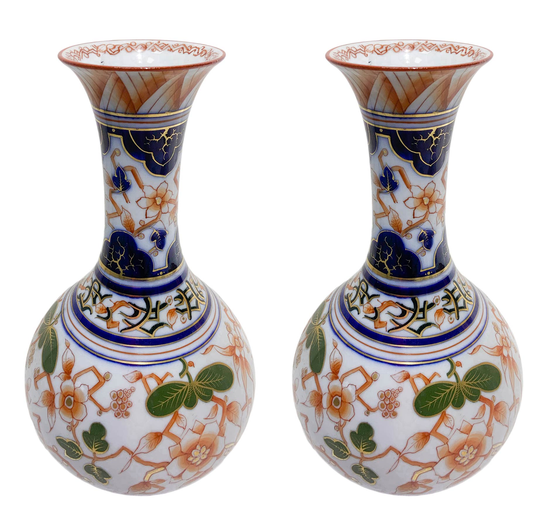 Coppia di vasi cinese in porcellana con decorazione floreale di colore...