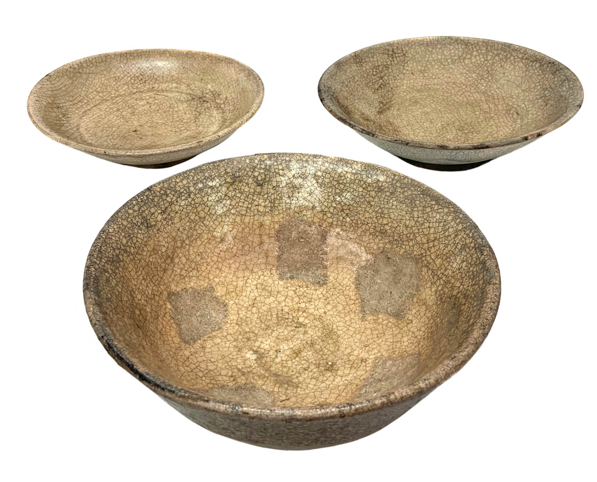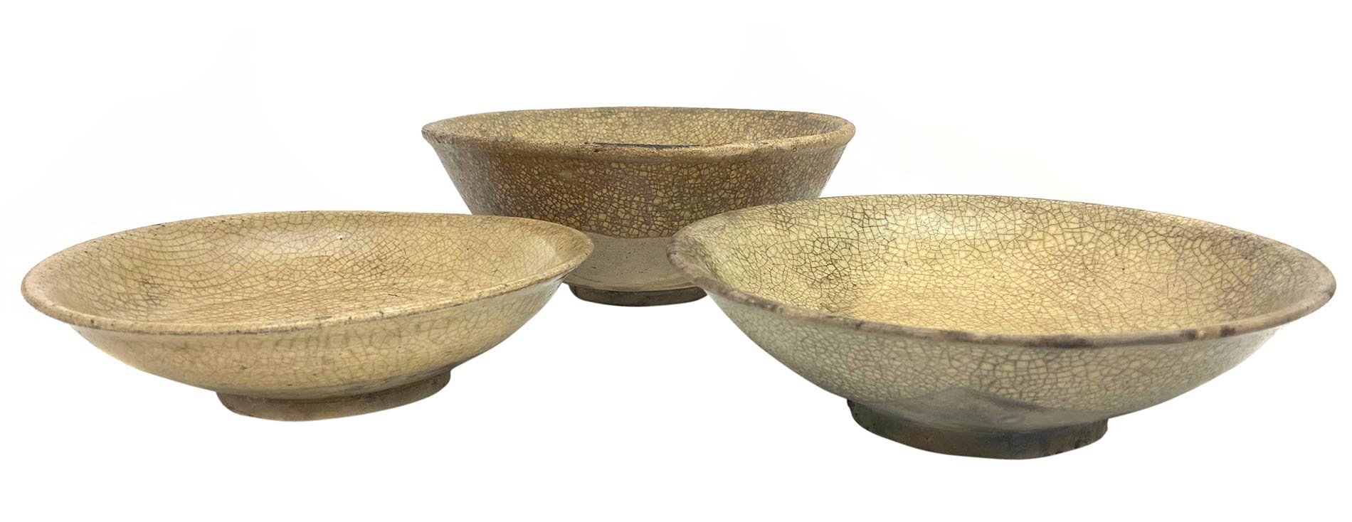 Tre ciotole in ceramica parzialmente invetriate, periodo “Anname” (Vietnam/Cina) XVII° - XVIII°. Cm 15,5 (integro);