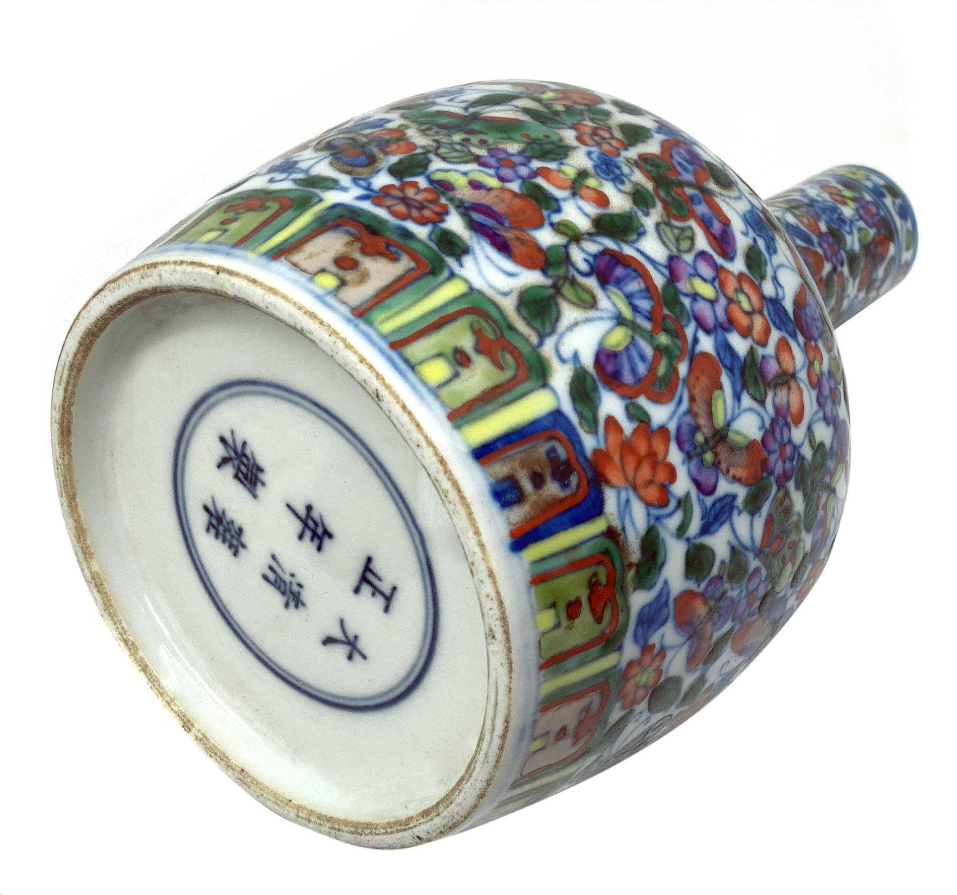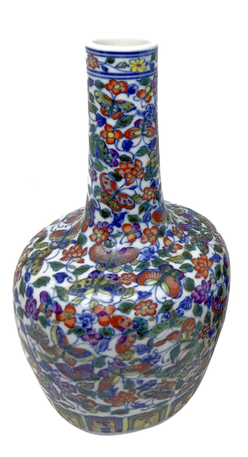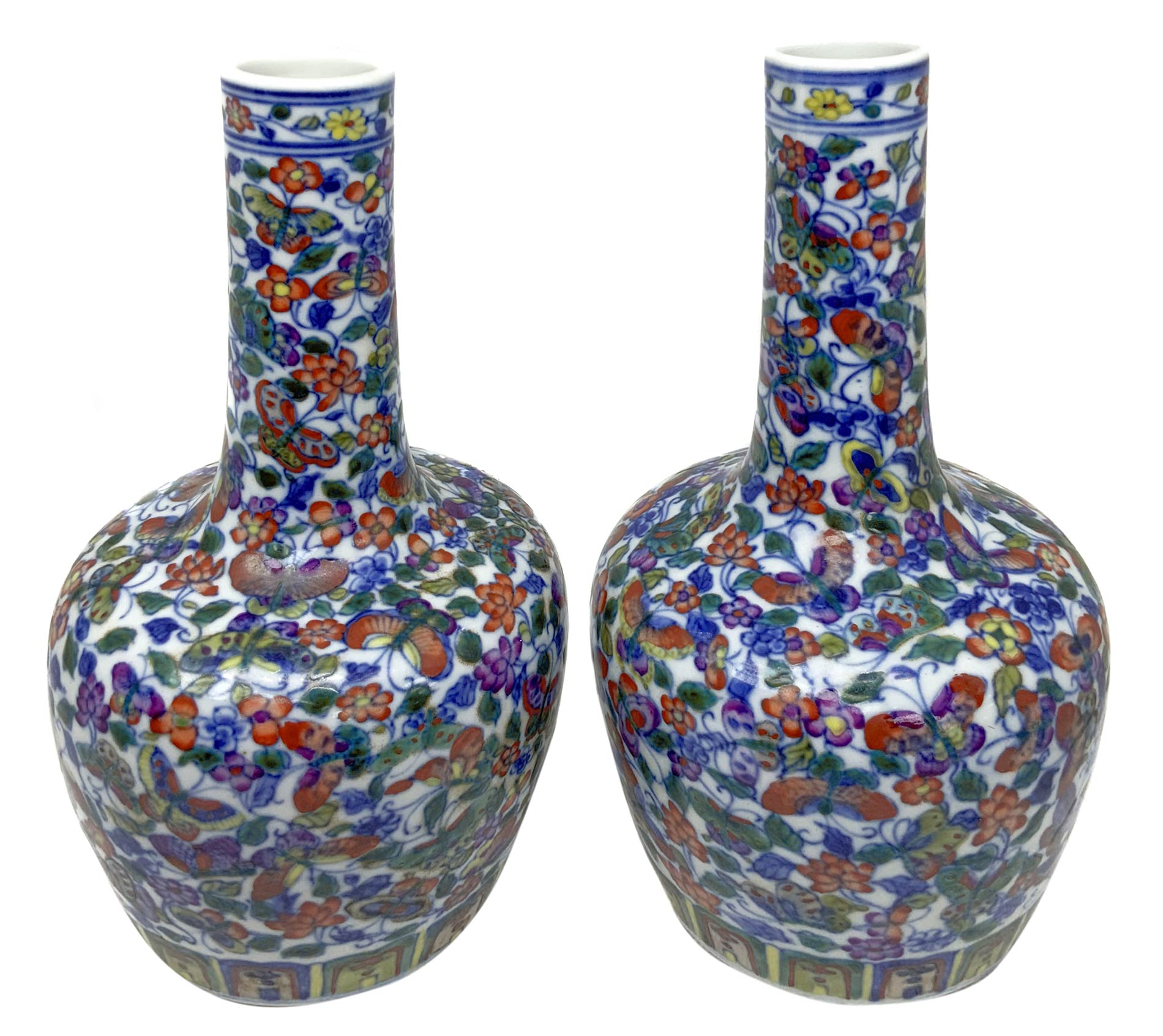 Coppia di vasi decorati con fiori, Cina, fine XX secolo. Cm 19 x 10,50