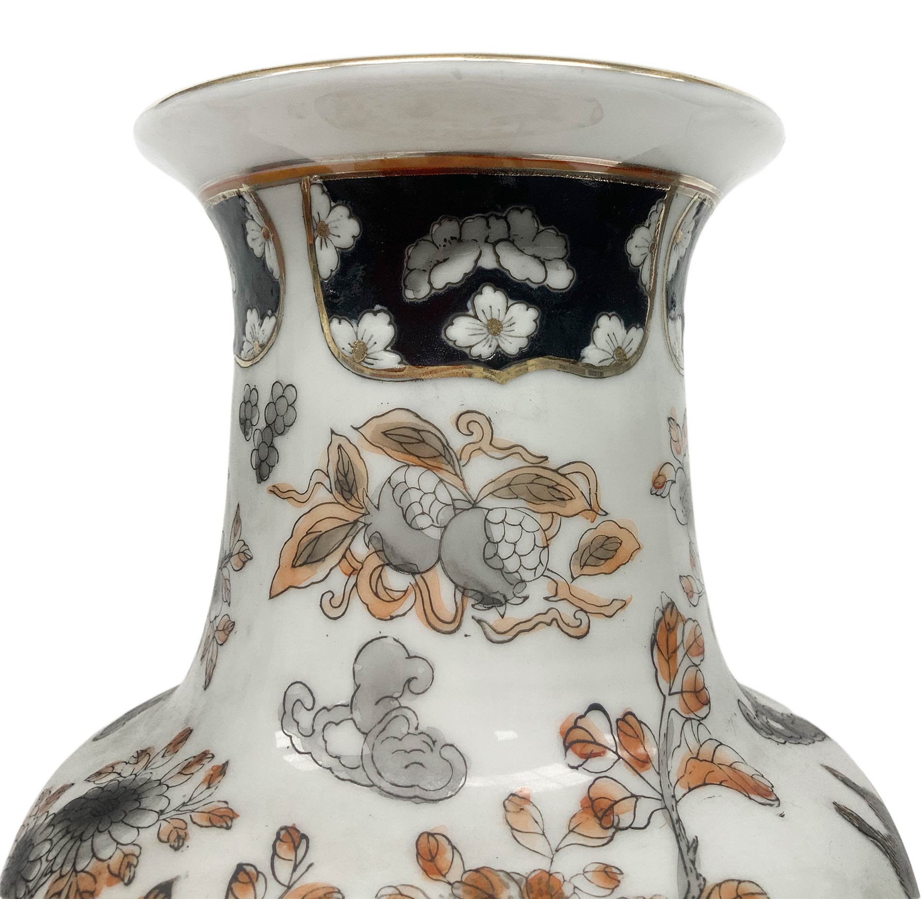 Vaso in porcellana cinese decori floreali su sfondo bianco Cm 41