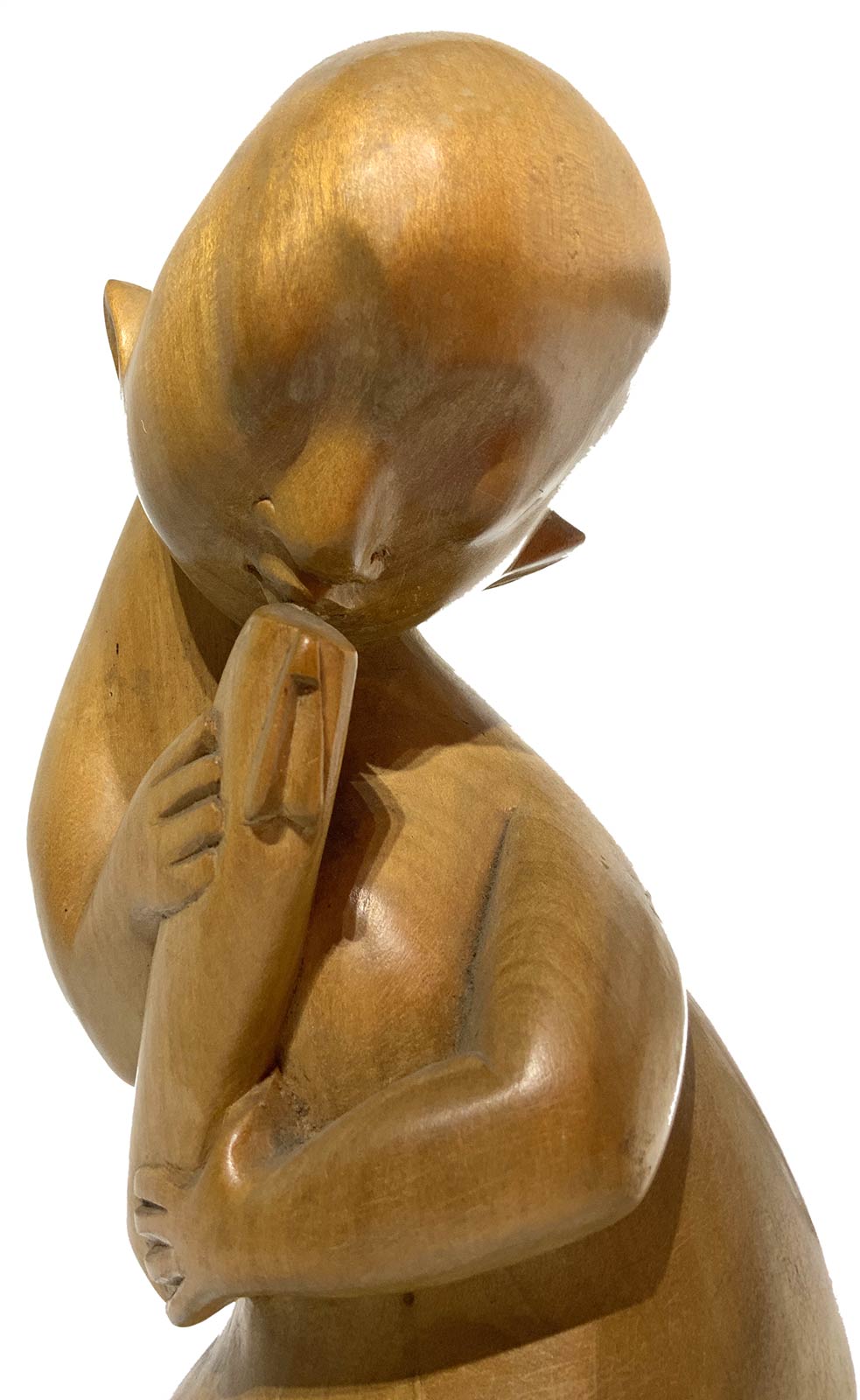 Statua in legno raffigurante ragazzo nudo che suona, Bali, Indonesia. H Cm 32.
