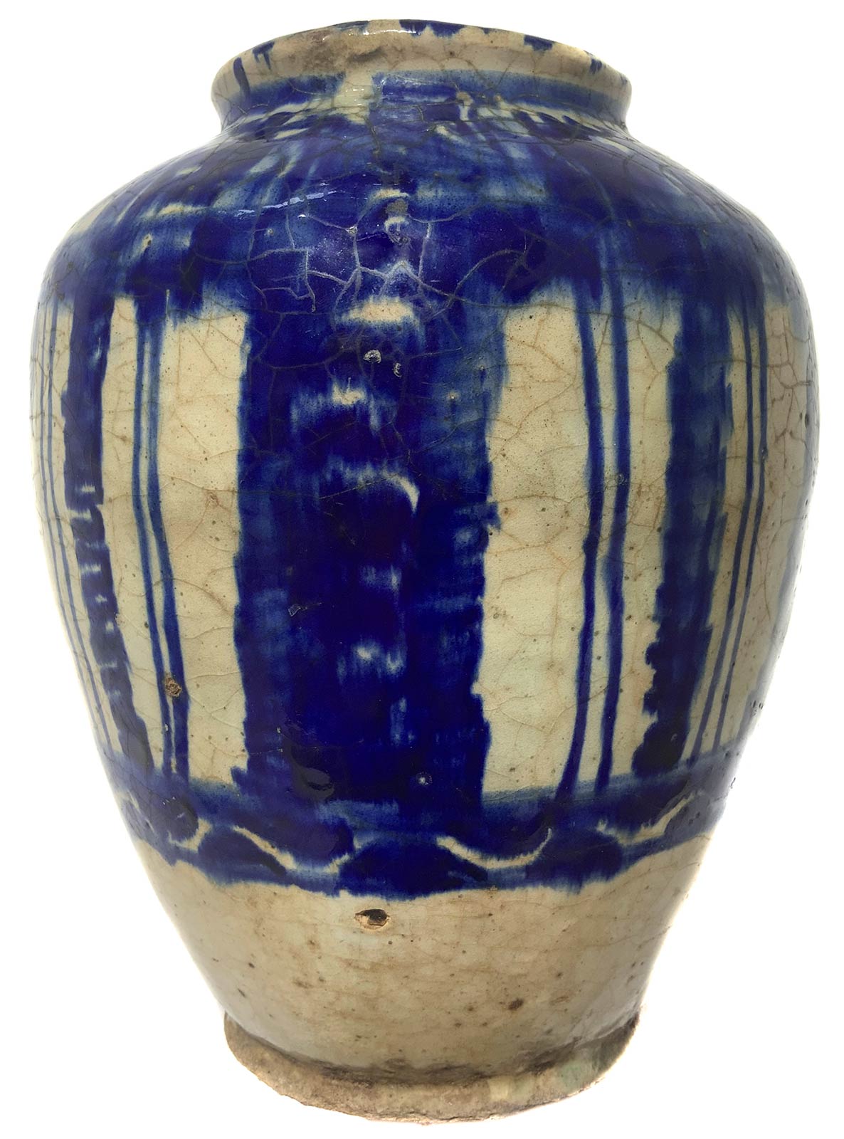 Vaso invetriato nei colori del blu. Persia, XIX secolo. H cm 25, larghezza max 19