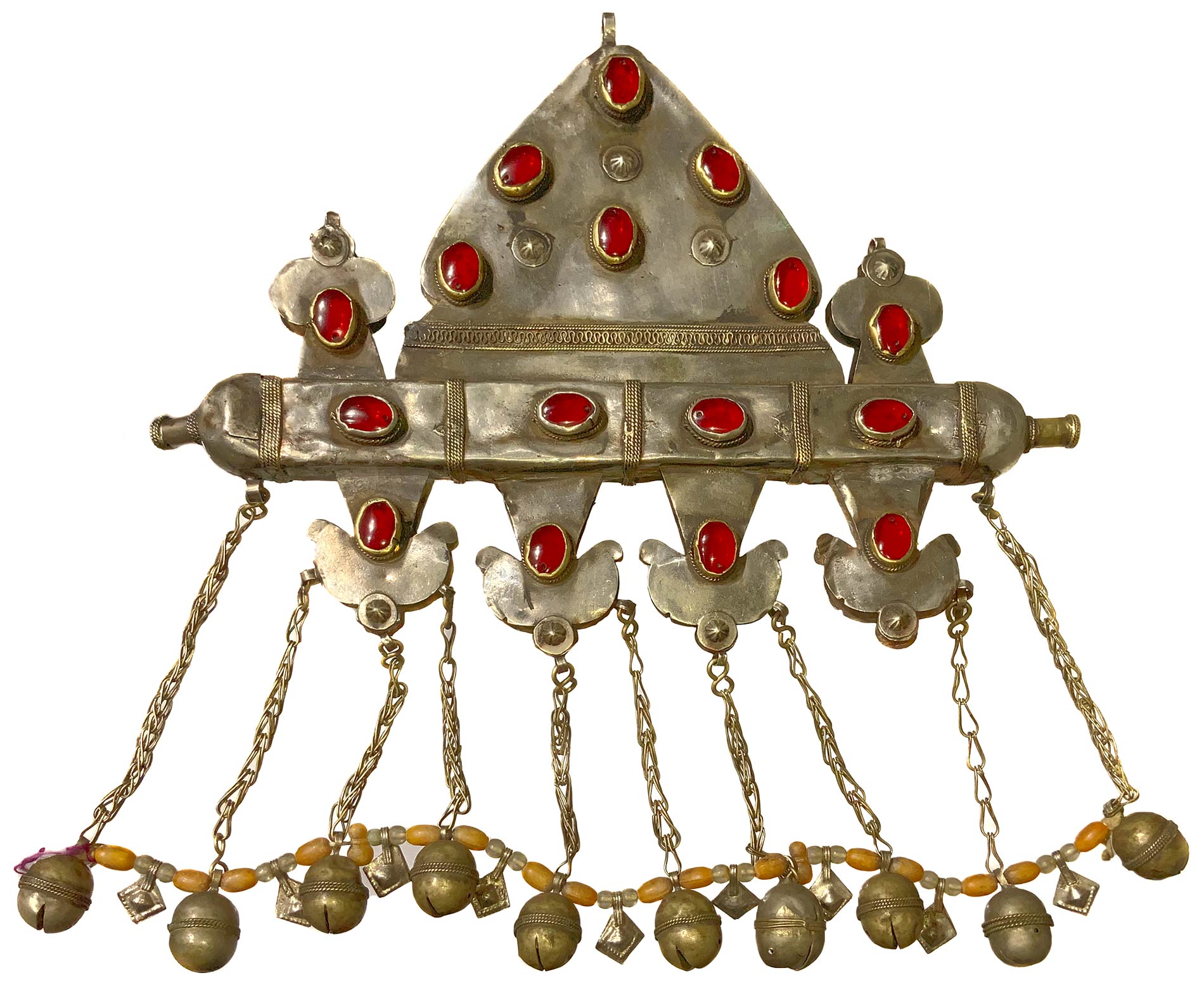 Pettorale in argento. Turkmenistan, XX secolo, cm 29 x 26.