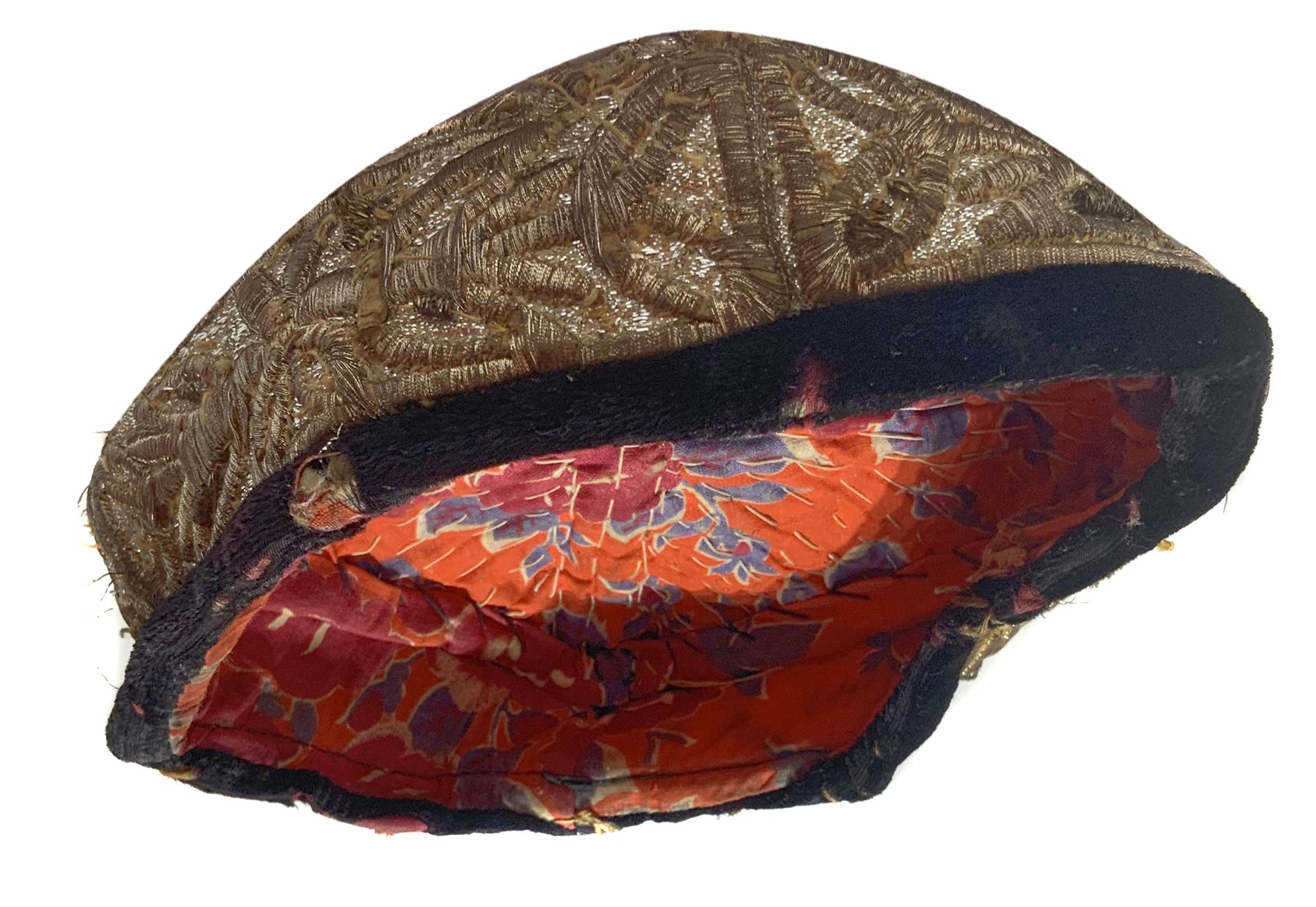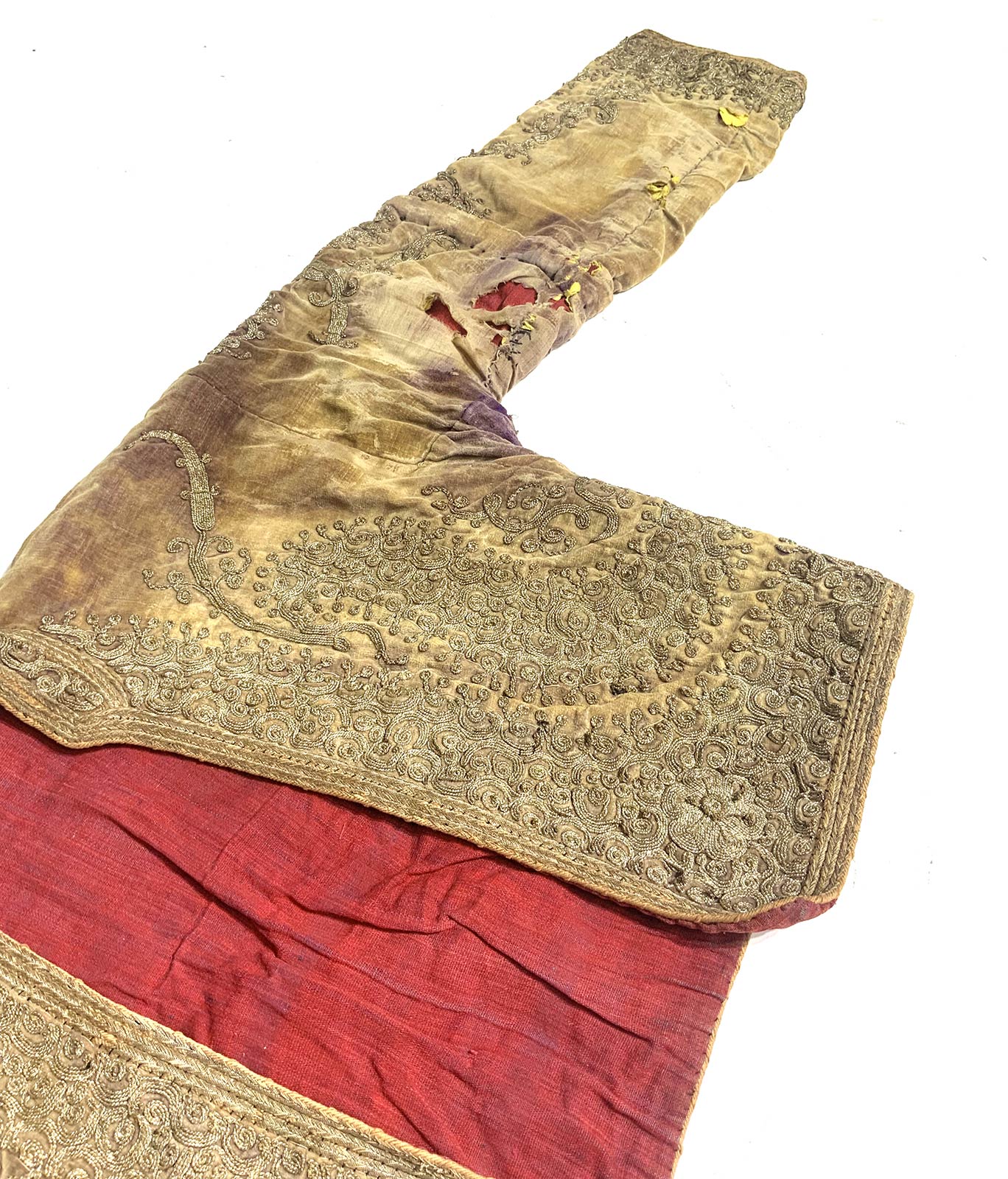 Corredo di giacca “chepken”, copricapo e calzature da cerimonia da donna, decorati con filo d’argento. Giacca con tracce di usura. Turchia, XIX/XX secolo.