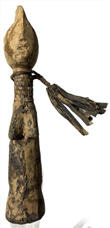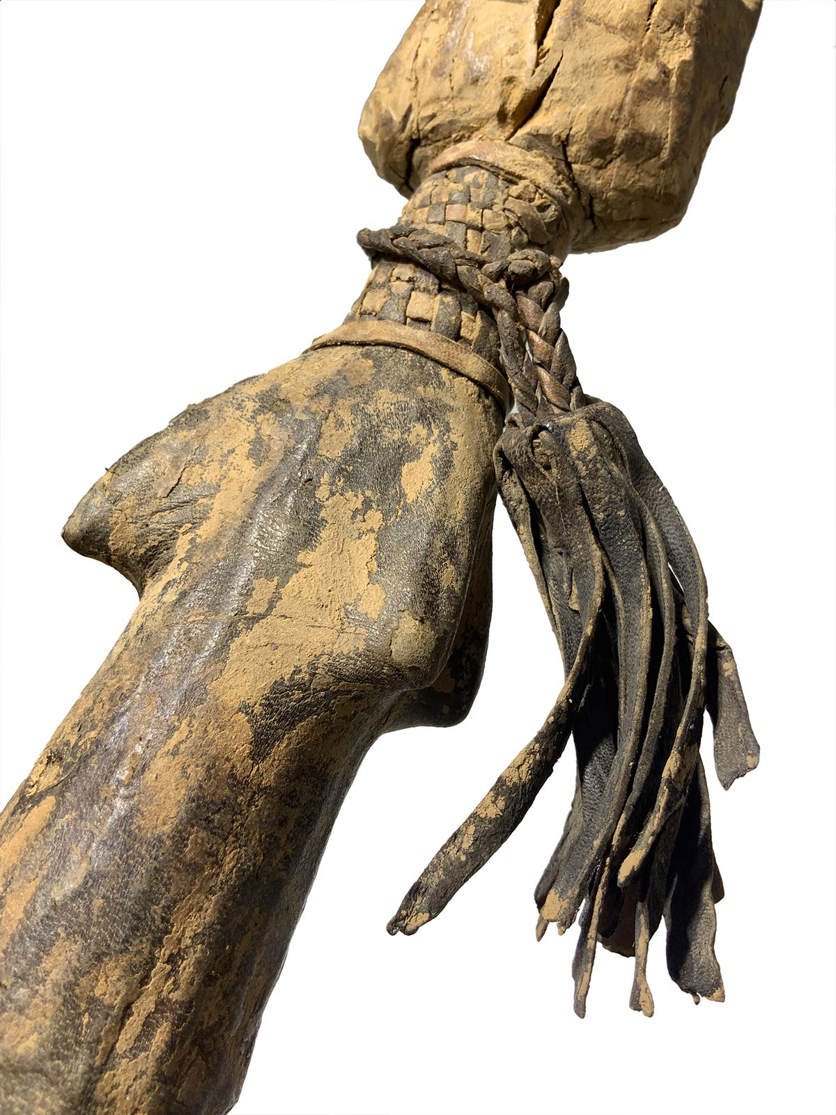 Feticcio in legno rivestito in pelle con doppio volto dogon. Mali, XIX/XX secolo, cm 26 x 6 x 5.