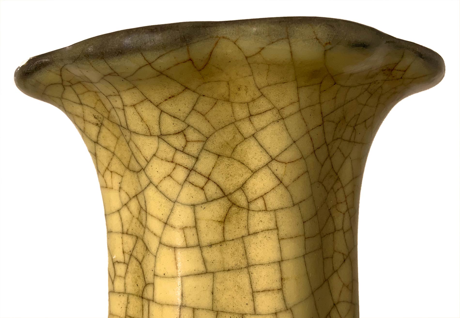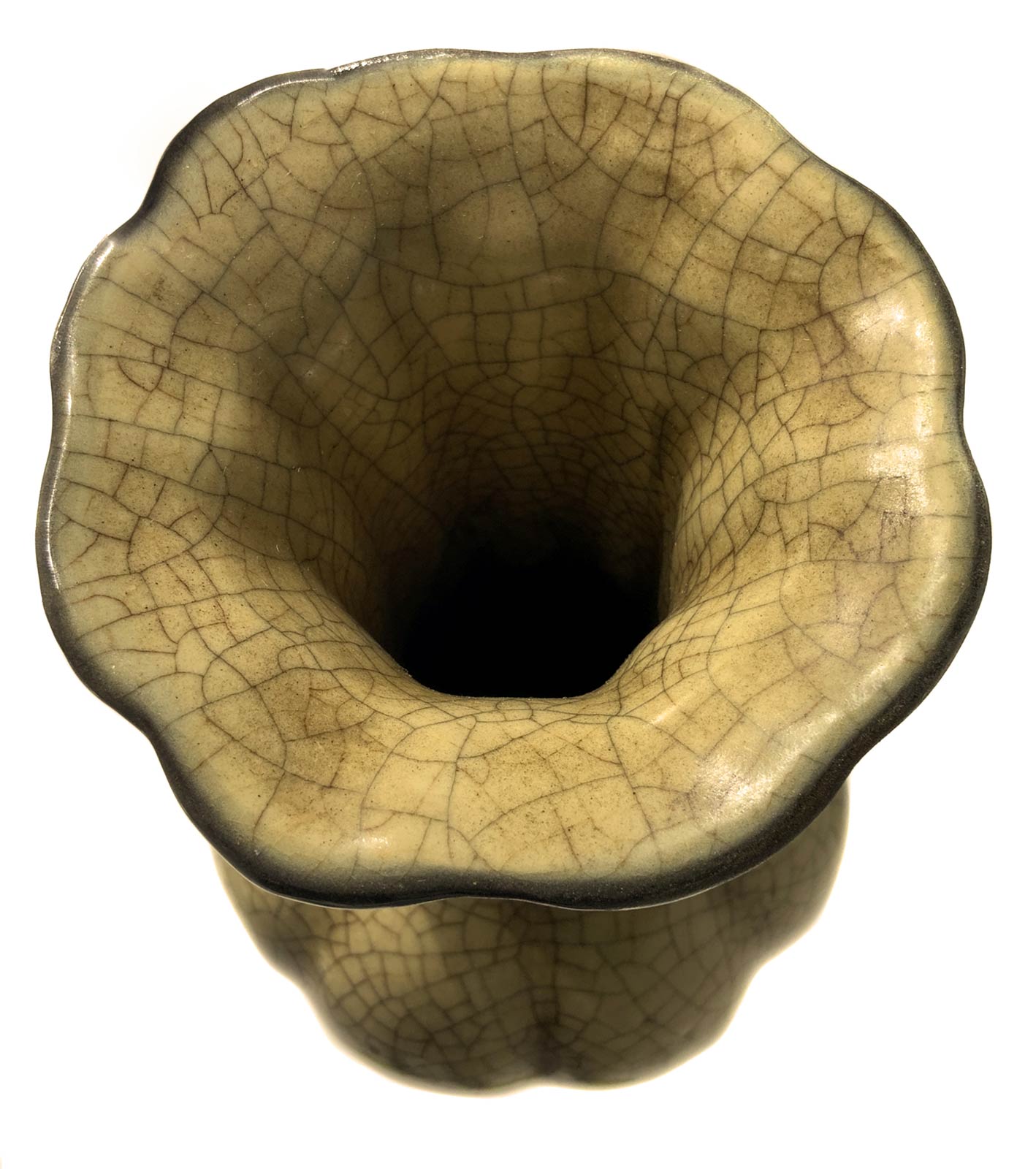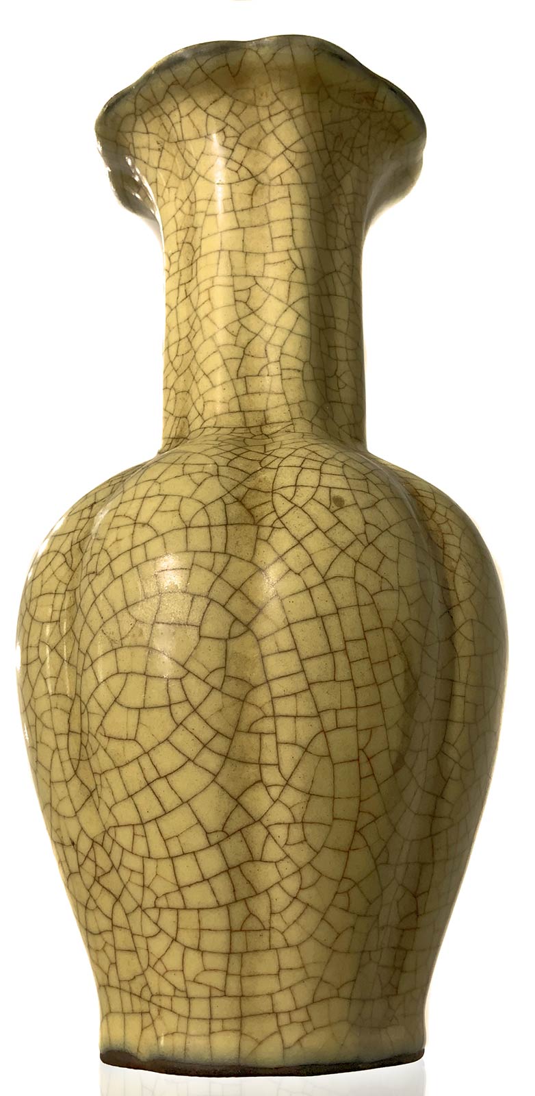 Vaso cinese in porcellana monocromo con invetriatura craquelè, XX secolo. Cm 24 x 12.