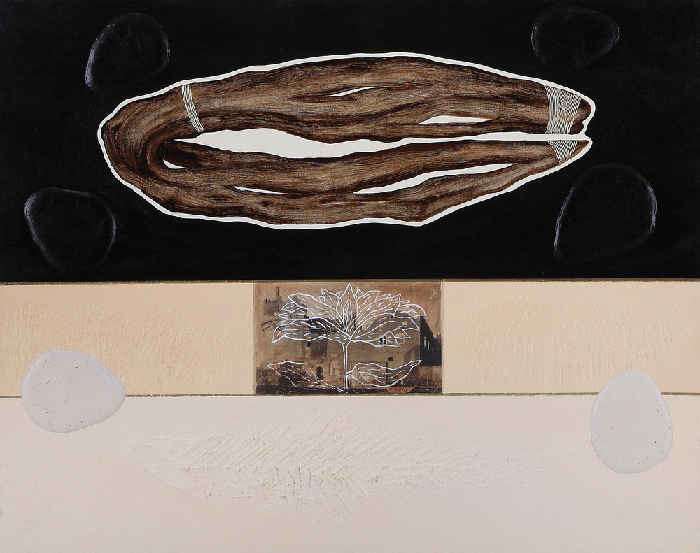 SERGIO GIOIELLI Cosenza 1956 Fossili olio e tecnica mista su tela cm. 40x50,...