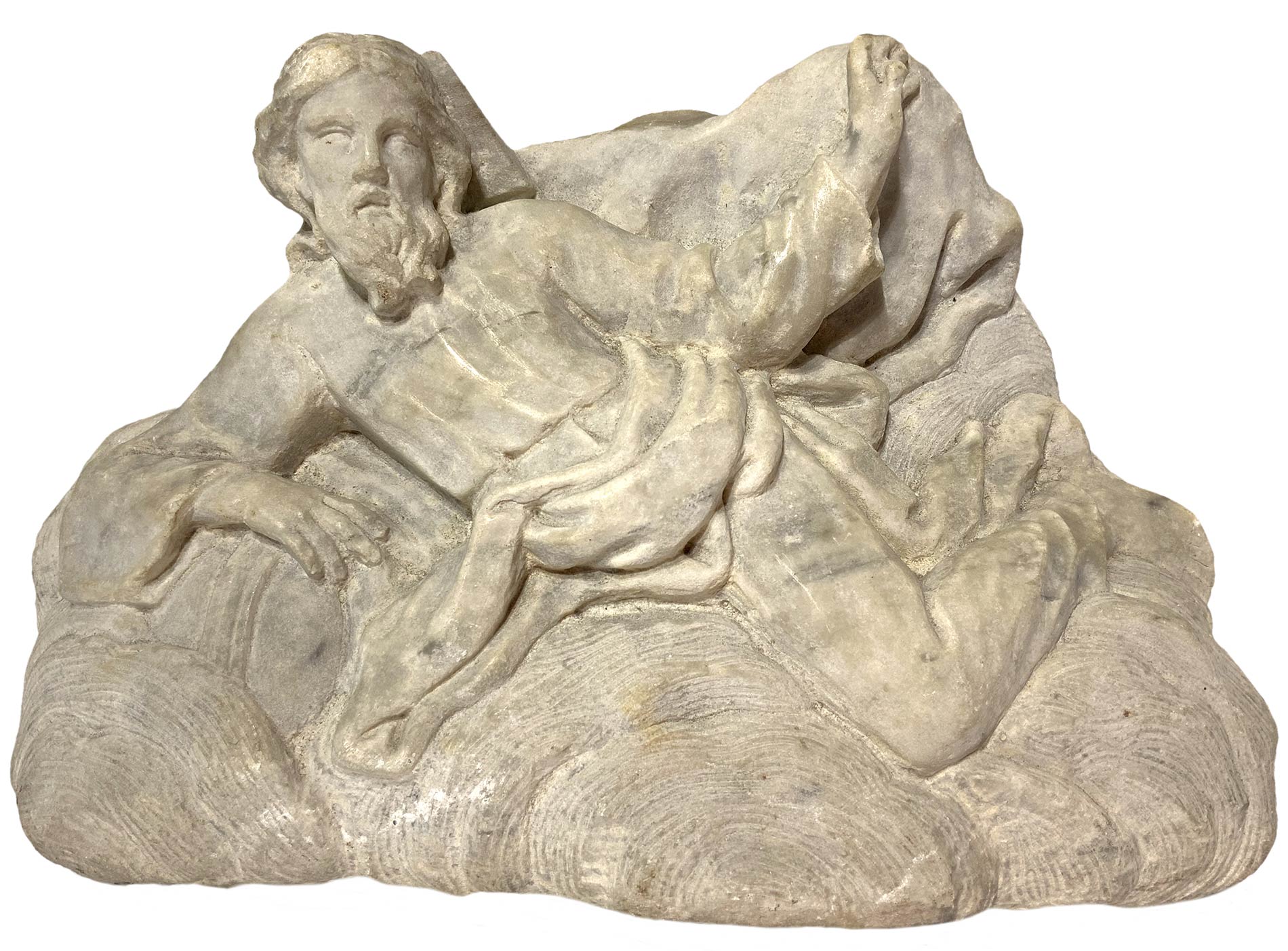 Scultura in marmo raffigurante Dio, XVII secolo. H cm 18 , base 26x8.