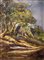 Dipinto raffigurante paesaggio boschivo di Elvira Del Giudice. Cm 30x23, olio su cartone telato.
