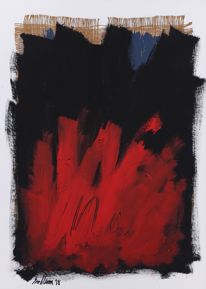 SALVATORE EMBLEMA Terzigno (Na) 25/04/1929 - Terzigno (Na) 02/02/2006 Senza titolo, 1998 tecnica mista e tela di juta su carta cm. 70x50, firma e anno in basso a sinistra, opera registrata presso l'Archivio Fotografico delle Opere, Museo Emblema al numero 2239 come da dichiarazione su certificato allegato.