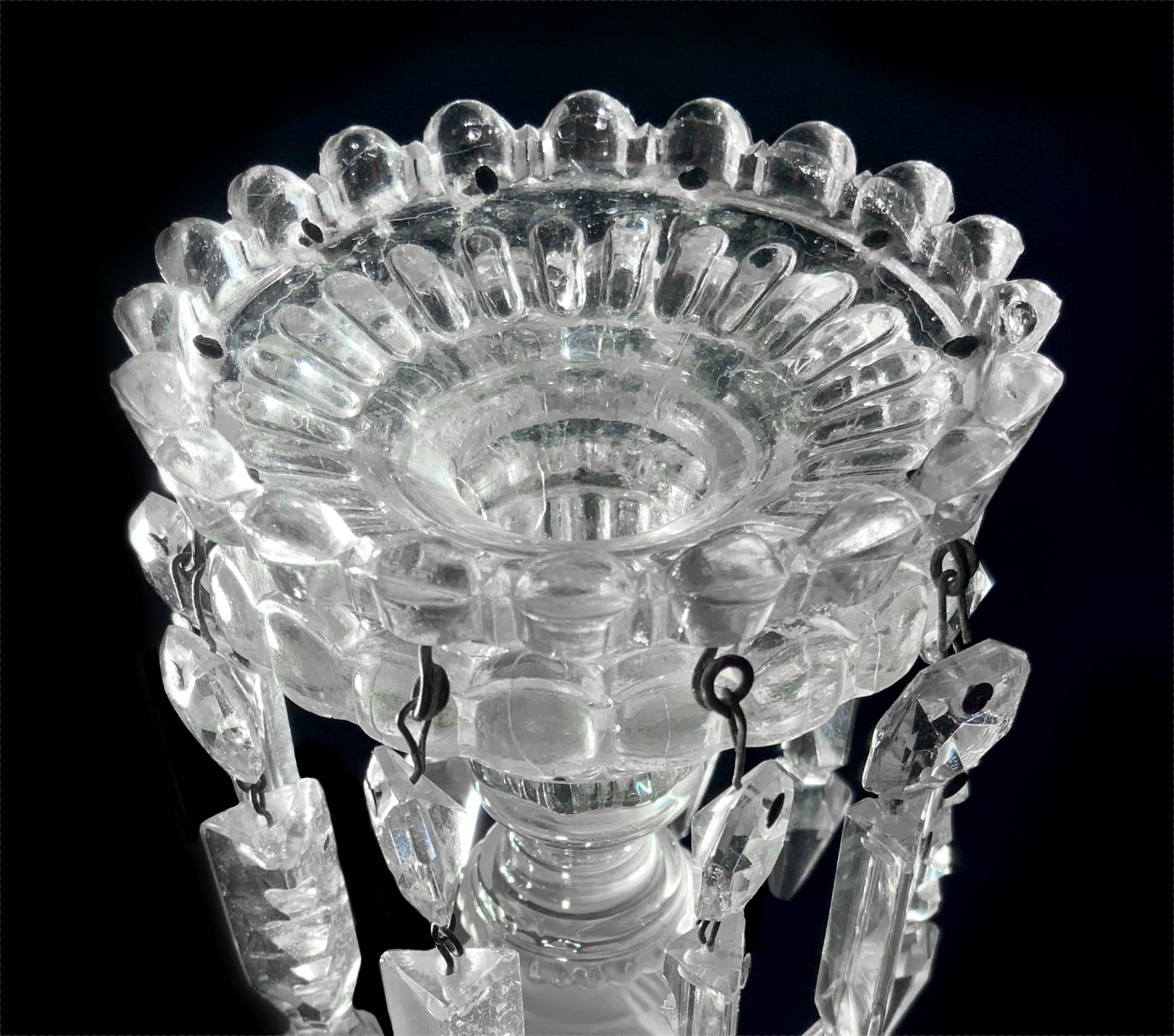 Coppia di candelieri in vetro, XIX secolo. Con brindoli Luigi Filippo e base...