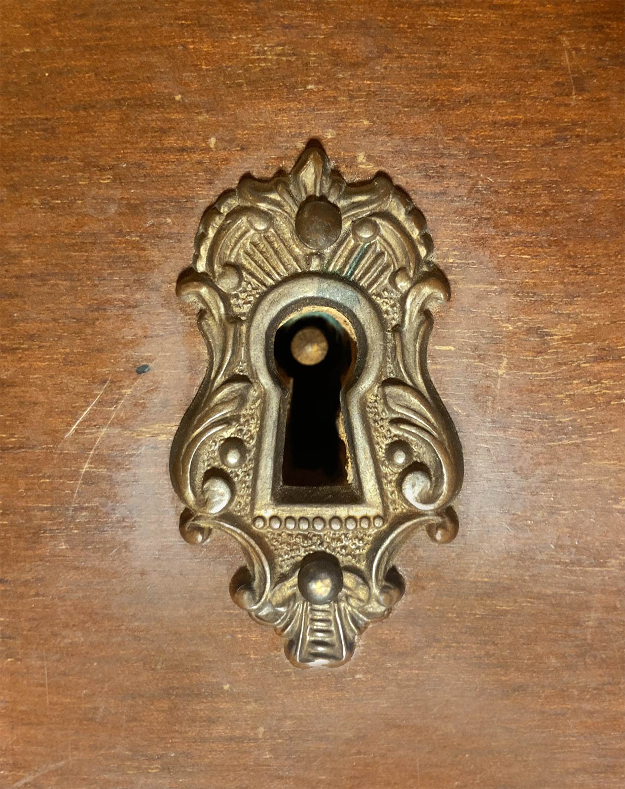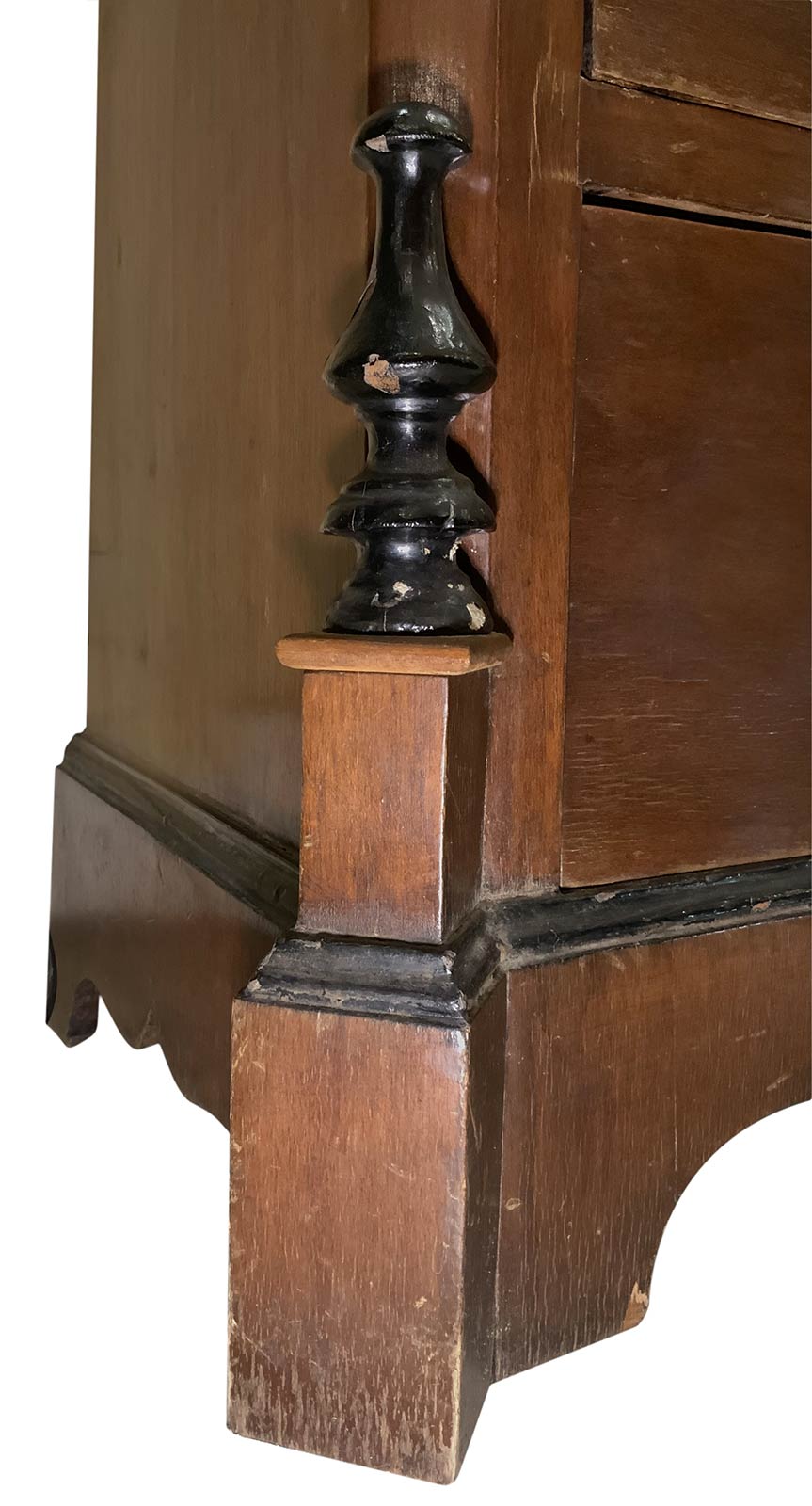 Cassettoncino a 4 cassetti in legno di mogano, fine XIX secolo, Sicilia. H cm 87x67x33.