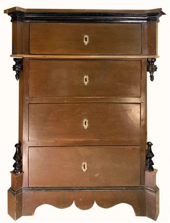 Cassettoncino a 4 cassetti in legno di mogano, fine XIX secolo, Sicilia. H cm...