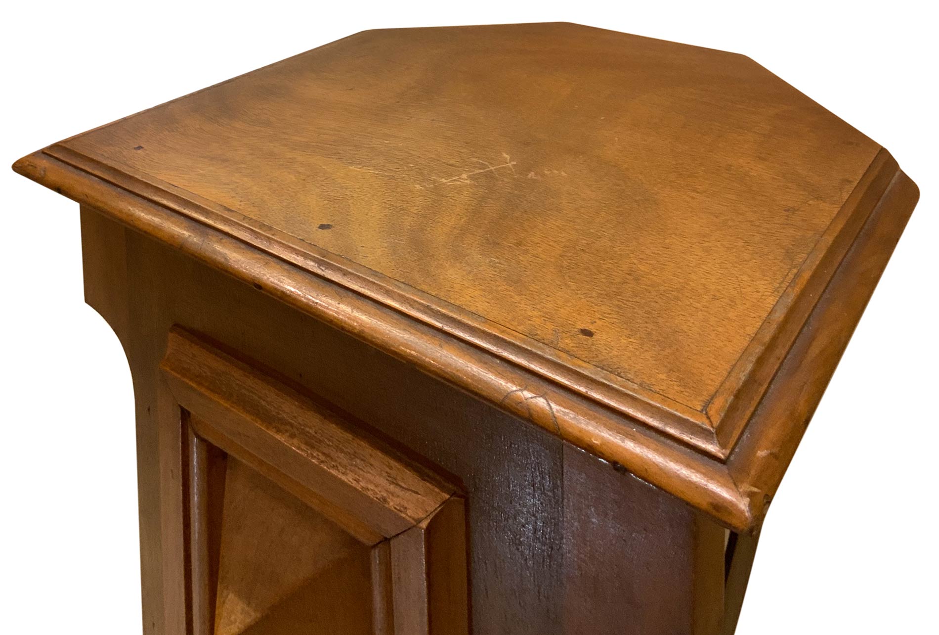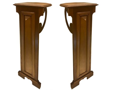 Coppia di cantonali in noce, inizi XX secolo. H cm 112x32x33.