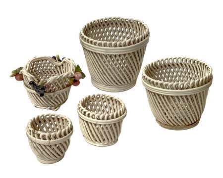 Gruppo di 5 vasi in ceramica a cesto manifattura Bassano, XX secolo. 2 vasi H...