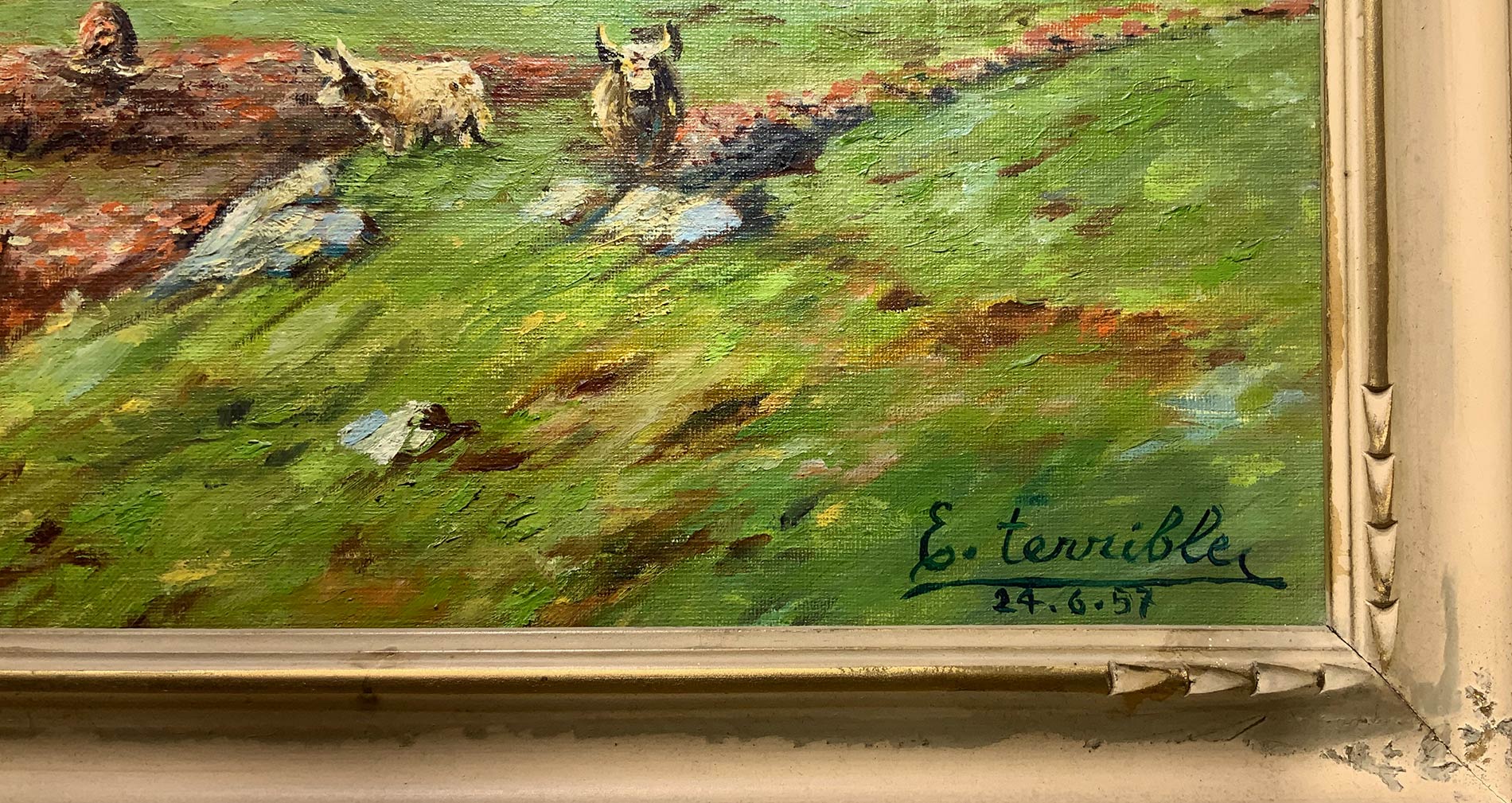 Dipinto ad olio su tela raffigurante paesaggio. Cm 50x70. Firmato Terribile e datato 24/6/57 in basso a destra.