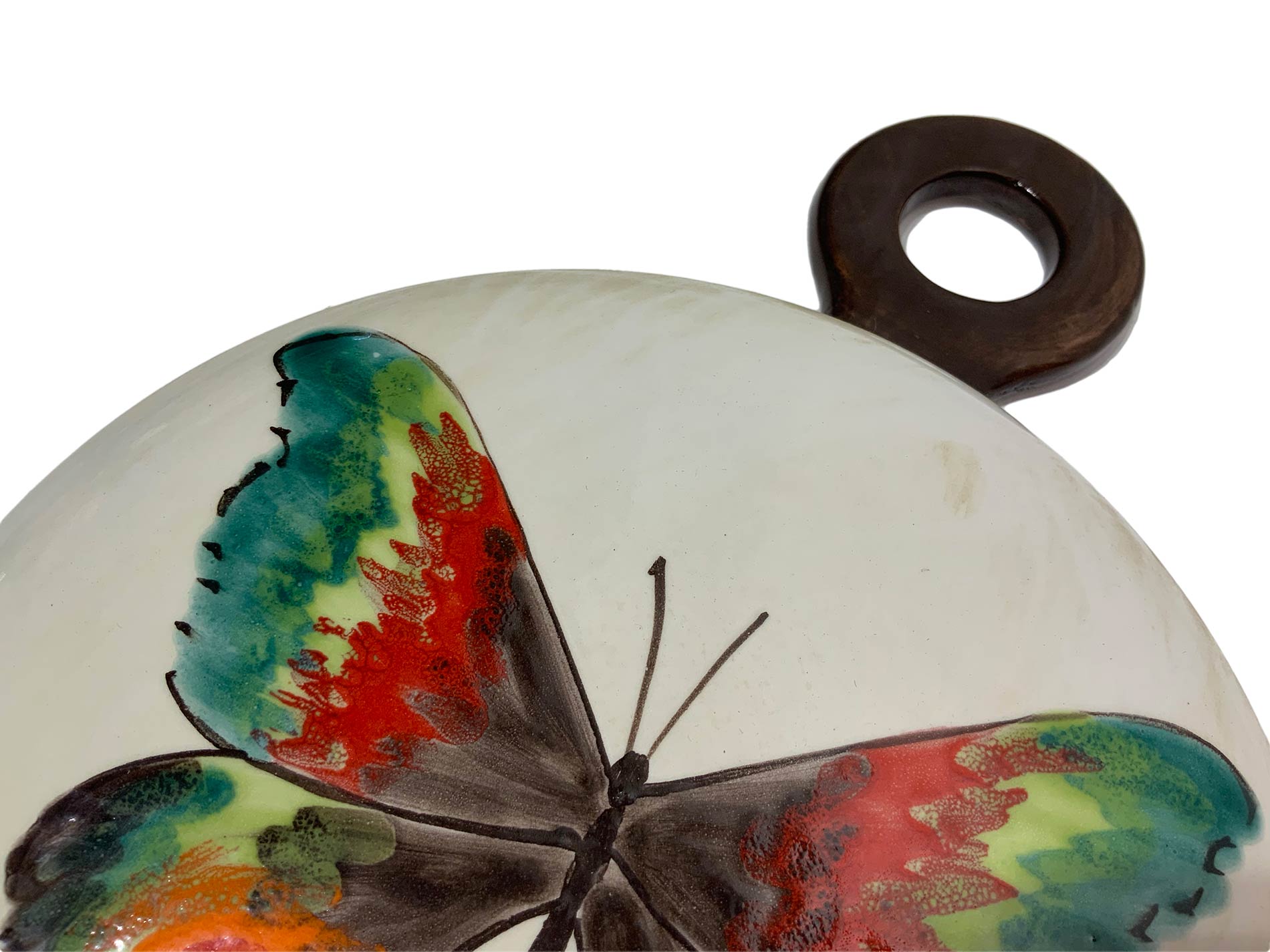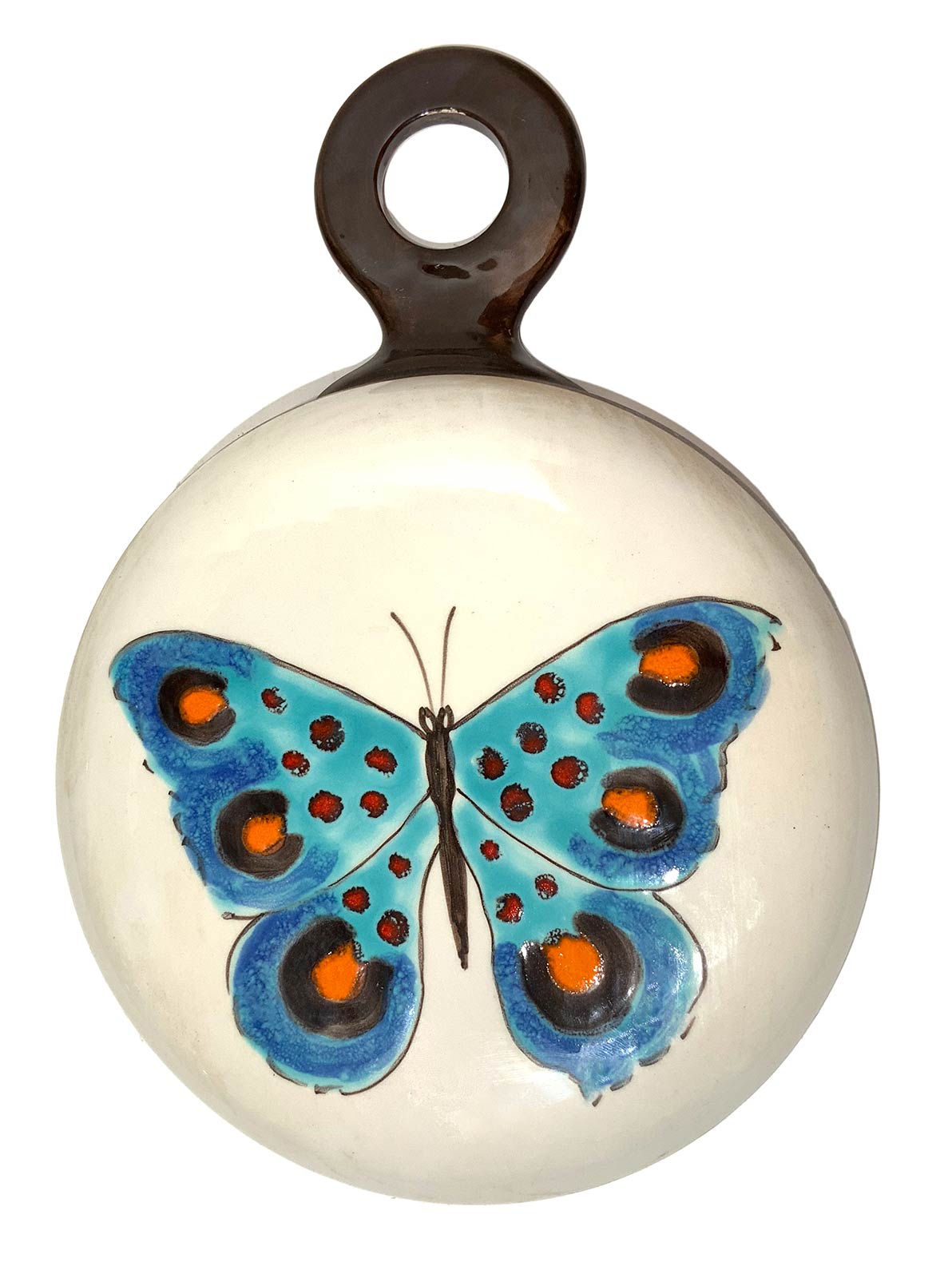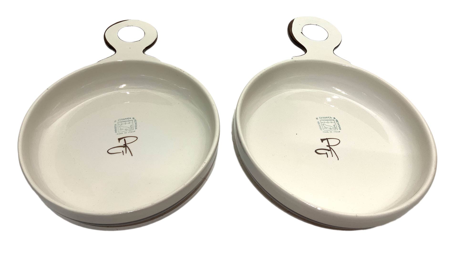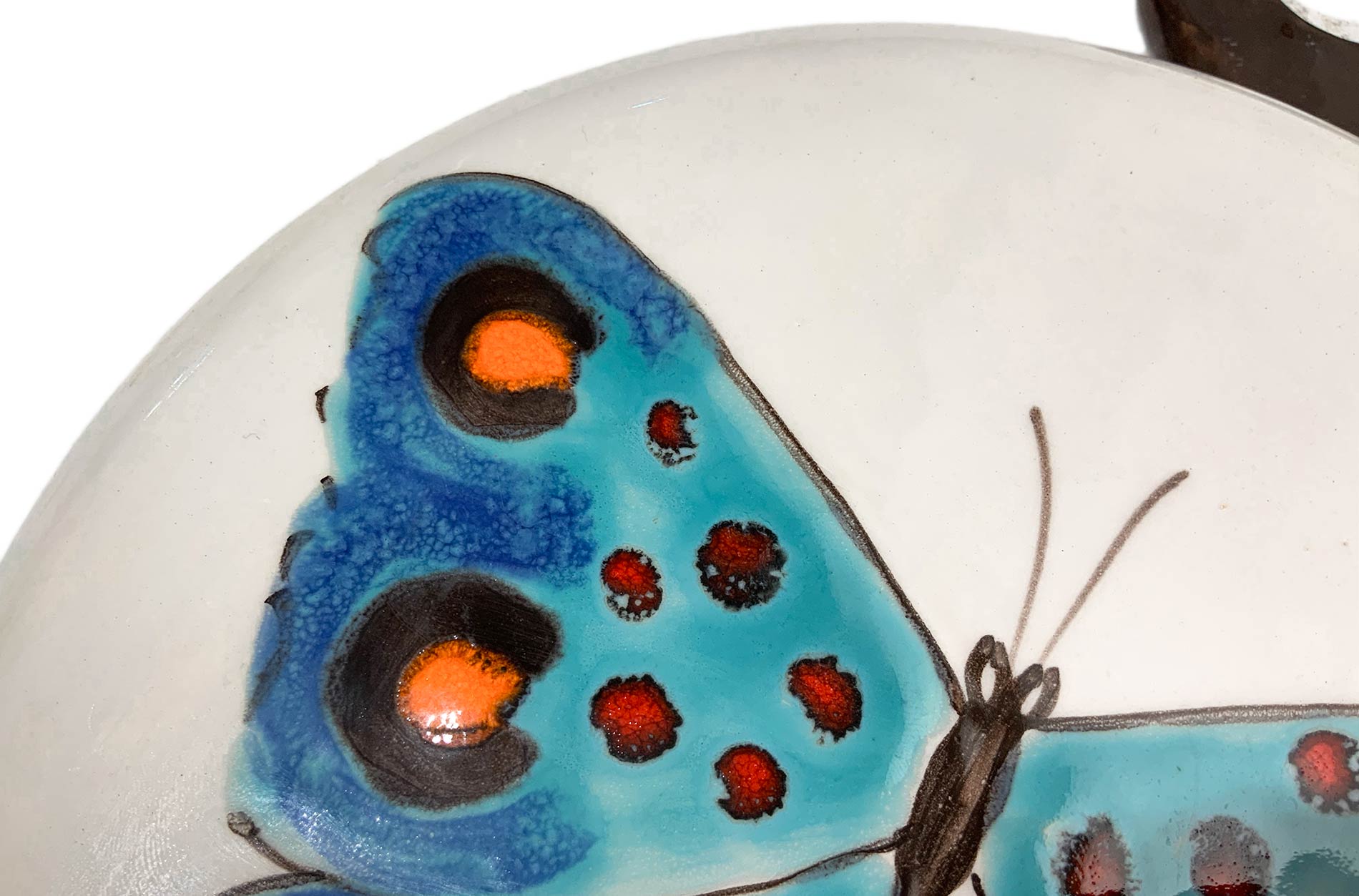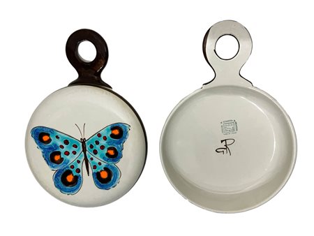 Coppia di scodelle in ceramica vicentina. Decorate con farfalla. Cm 21