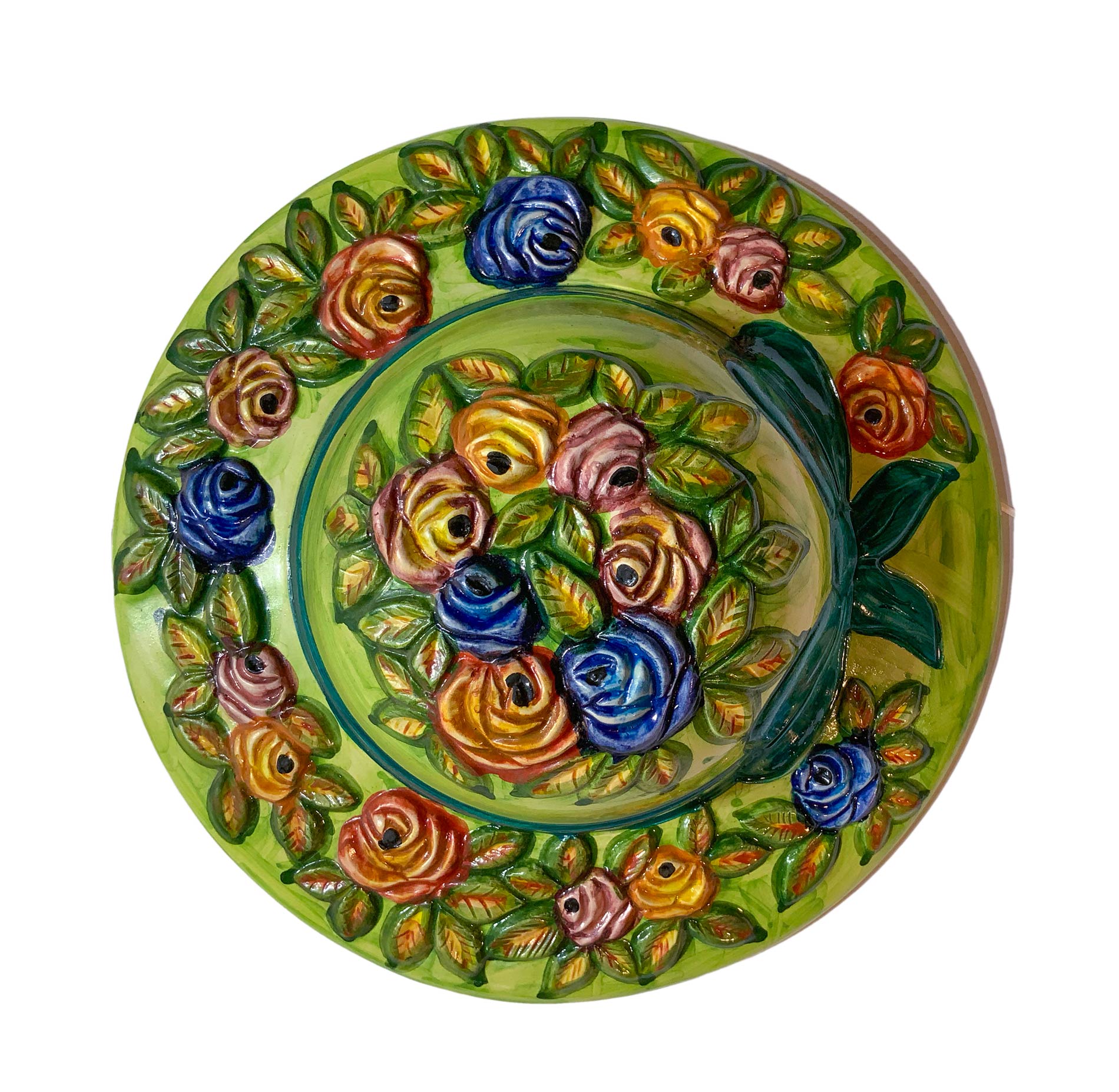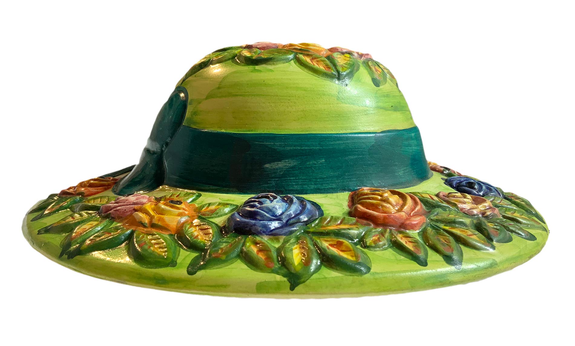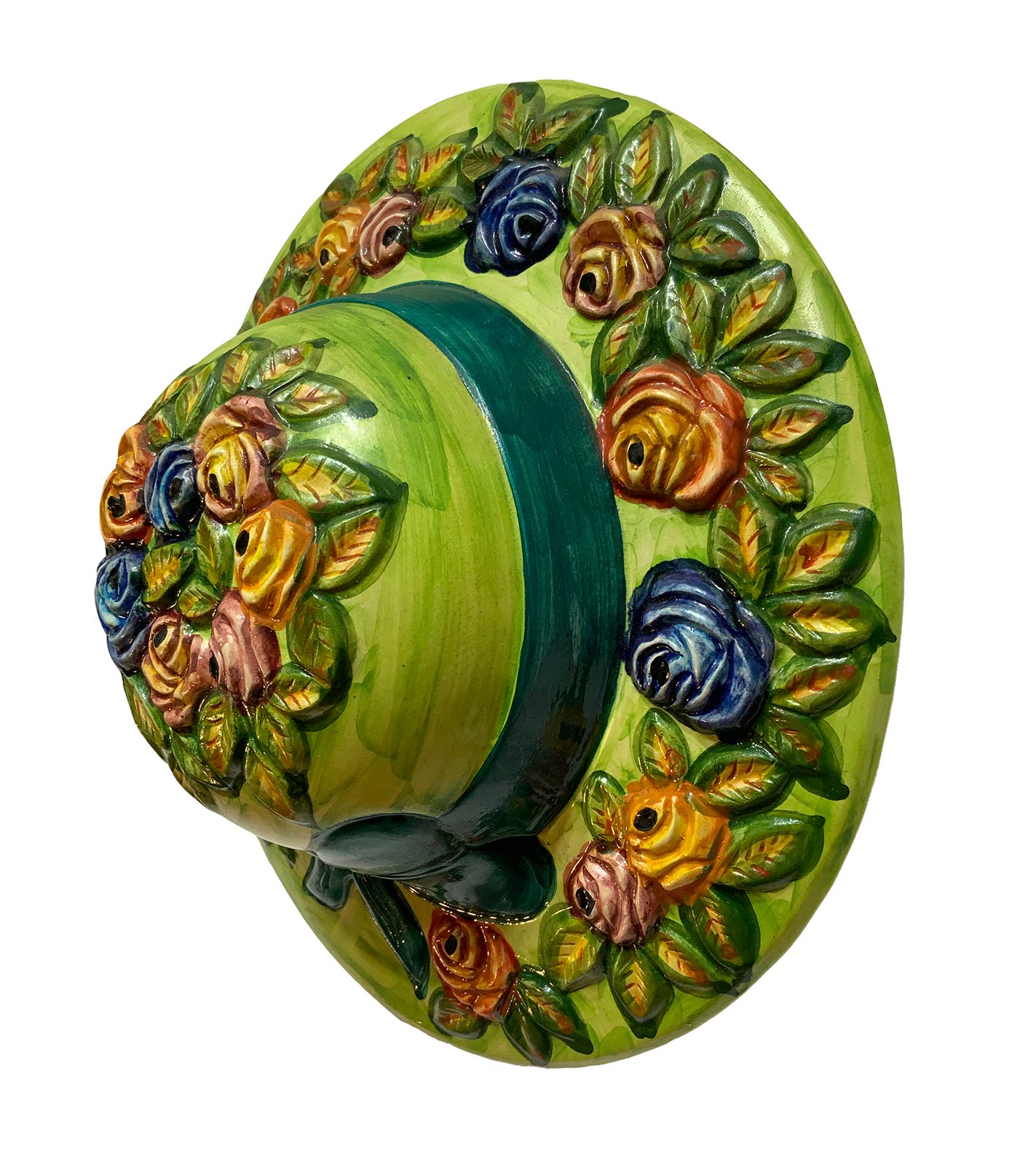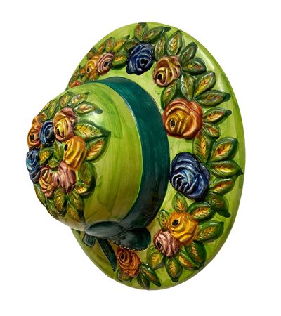 Cappello in maiolica decorato a fiori, Portogallo. Cm 23.