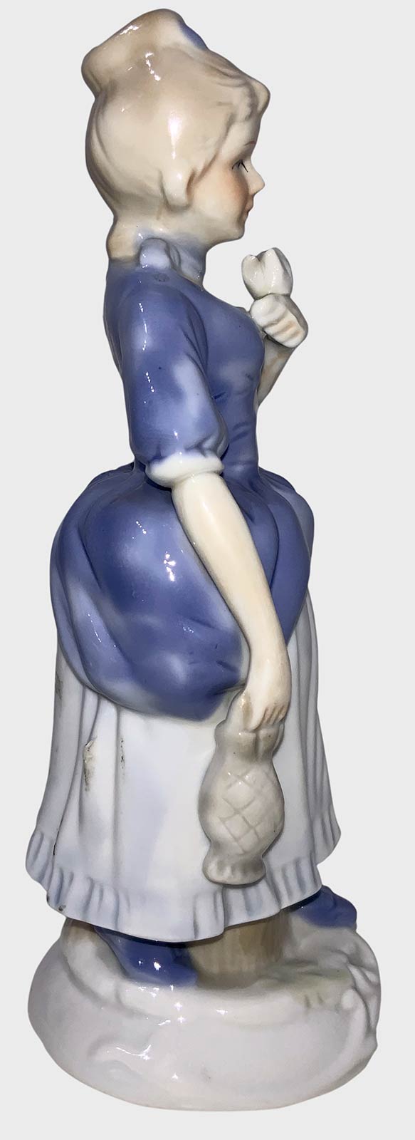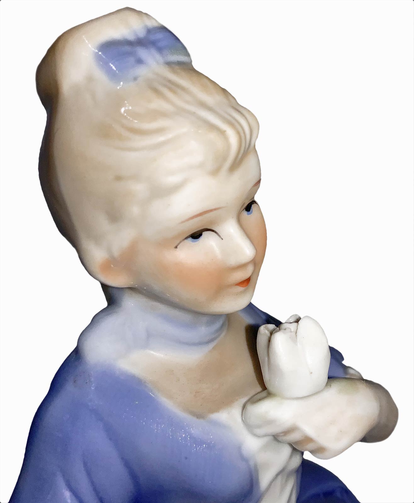 Statua in porcellana di Capodimonte, donna con fiore. H Cm 19