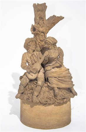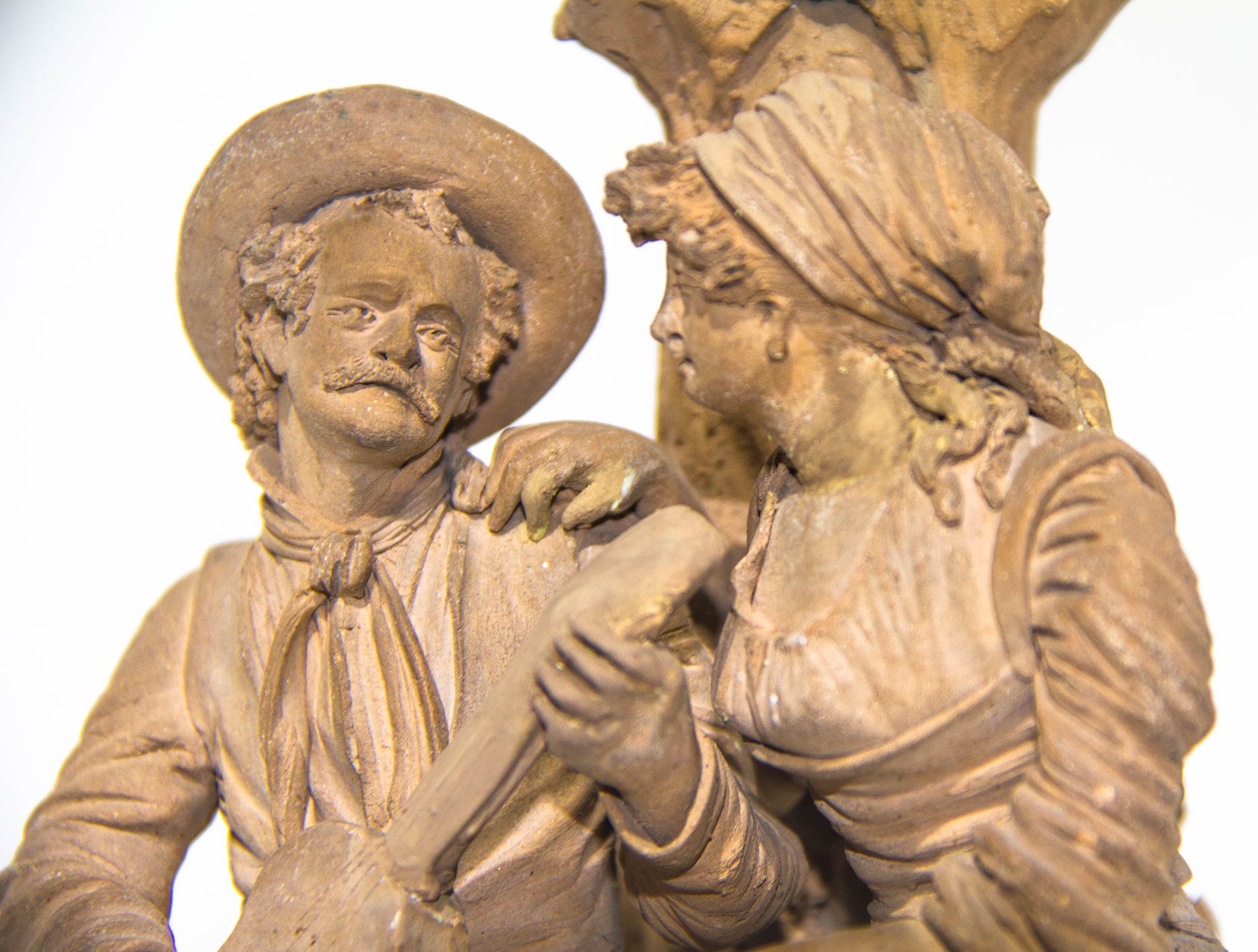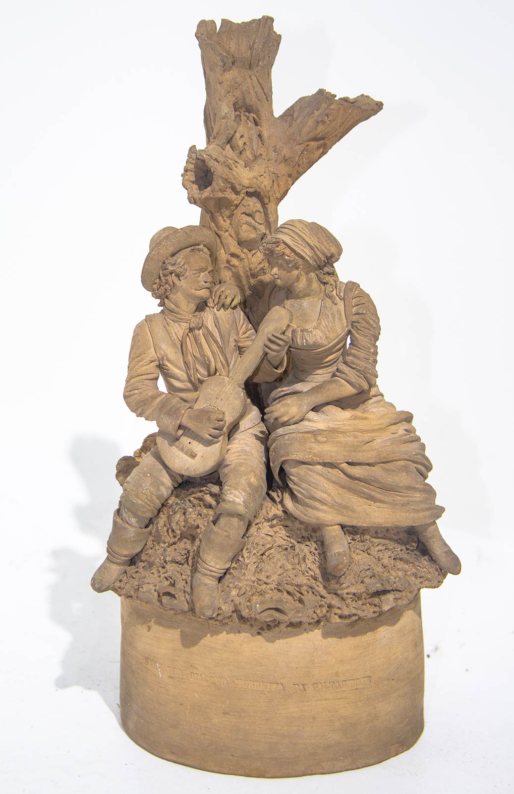 Giacomo Morretta, Caltagirone, XIX Secolo. Scultura in terracotta. Suonatore e donna . H cm 34