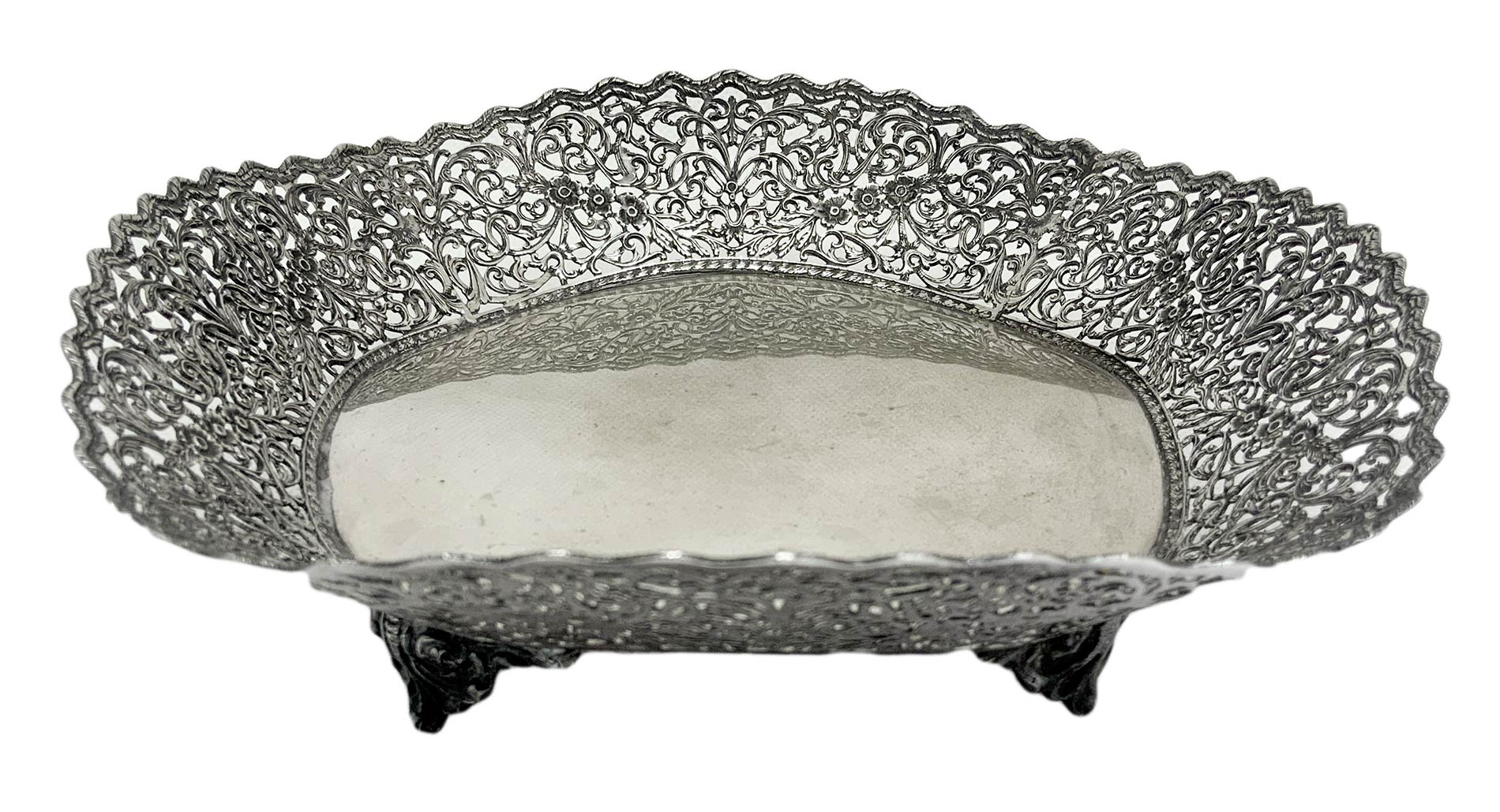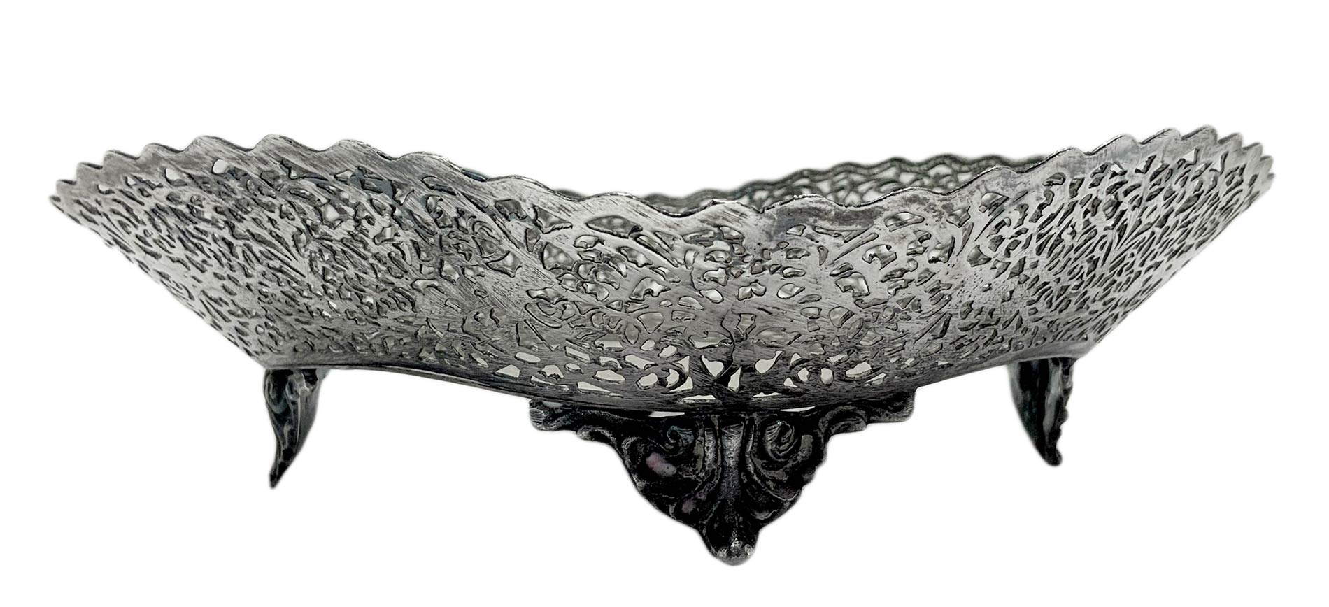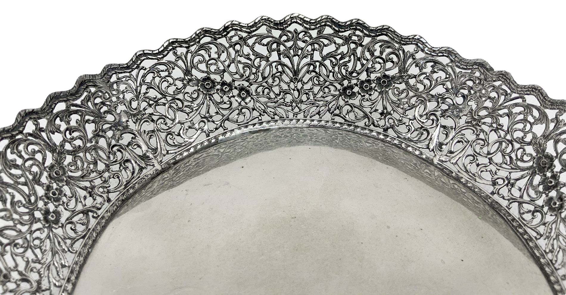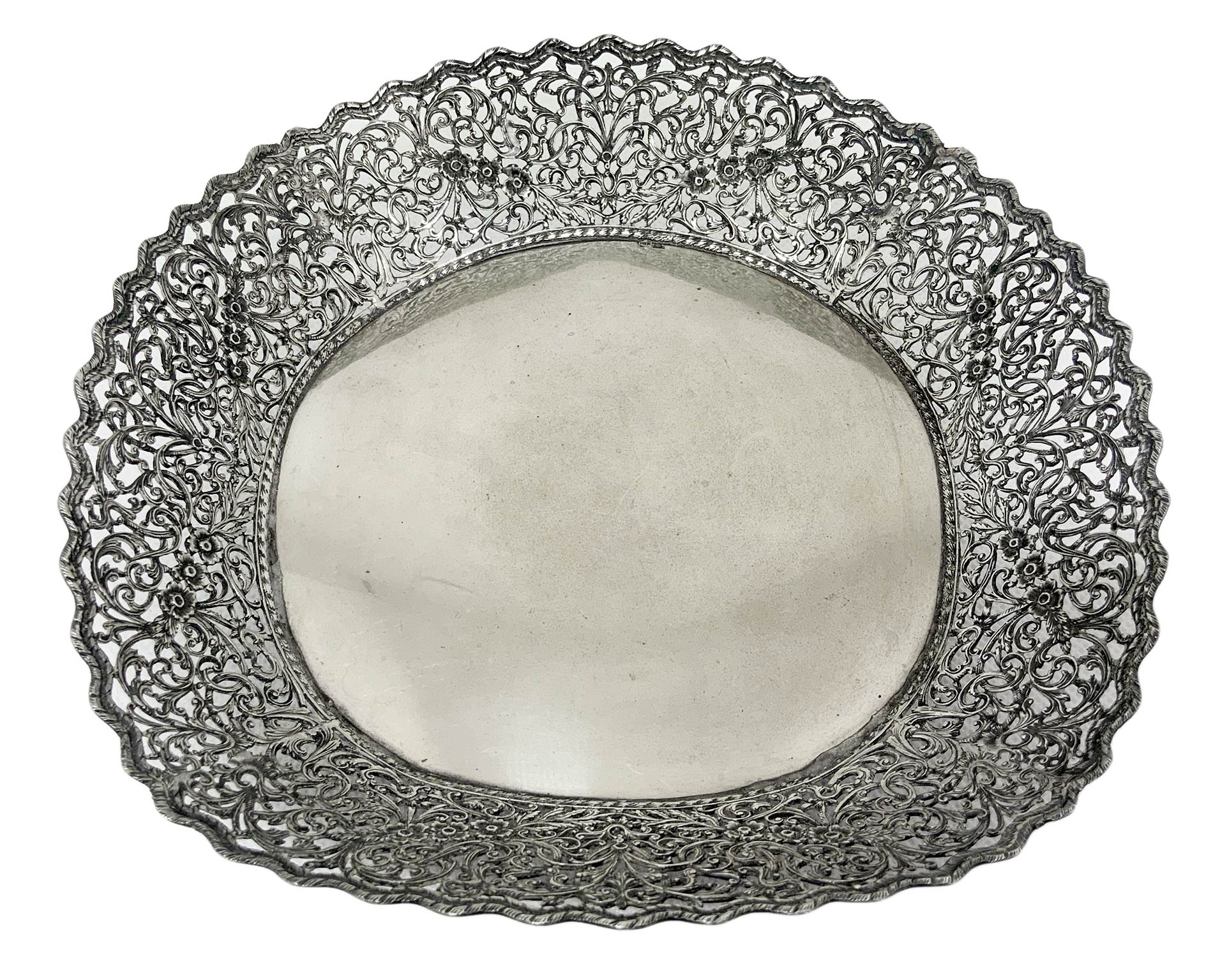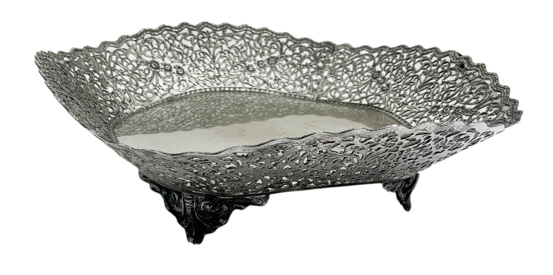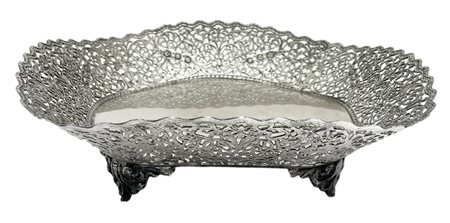 Centrotavola in argento 800 con tesa merlettata. H cm 5x18x18. Peso gr 230.