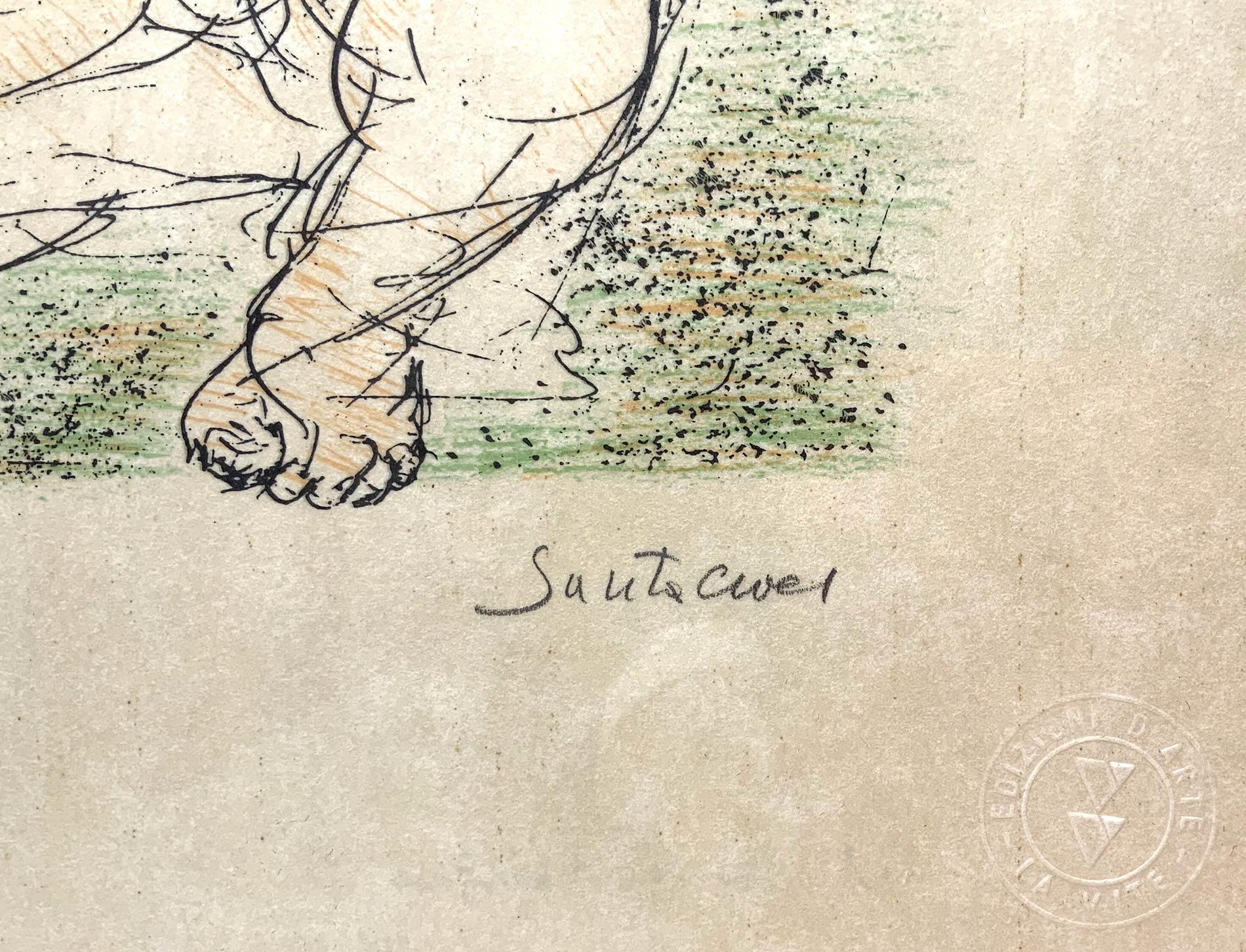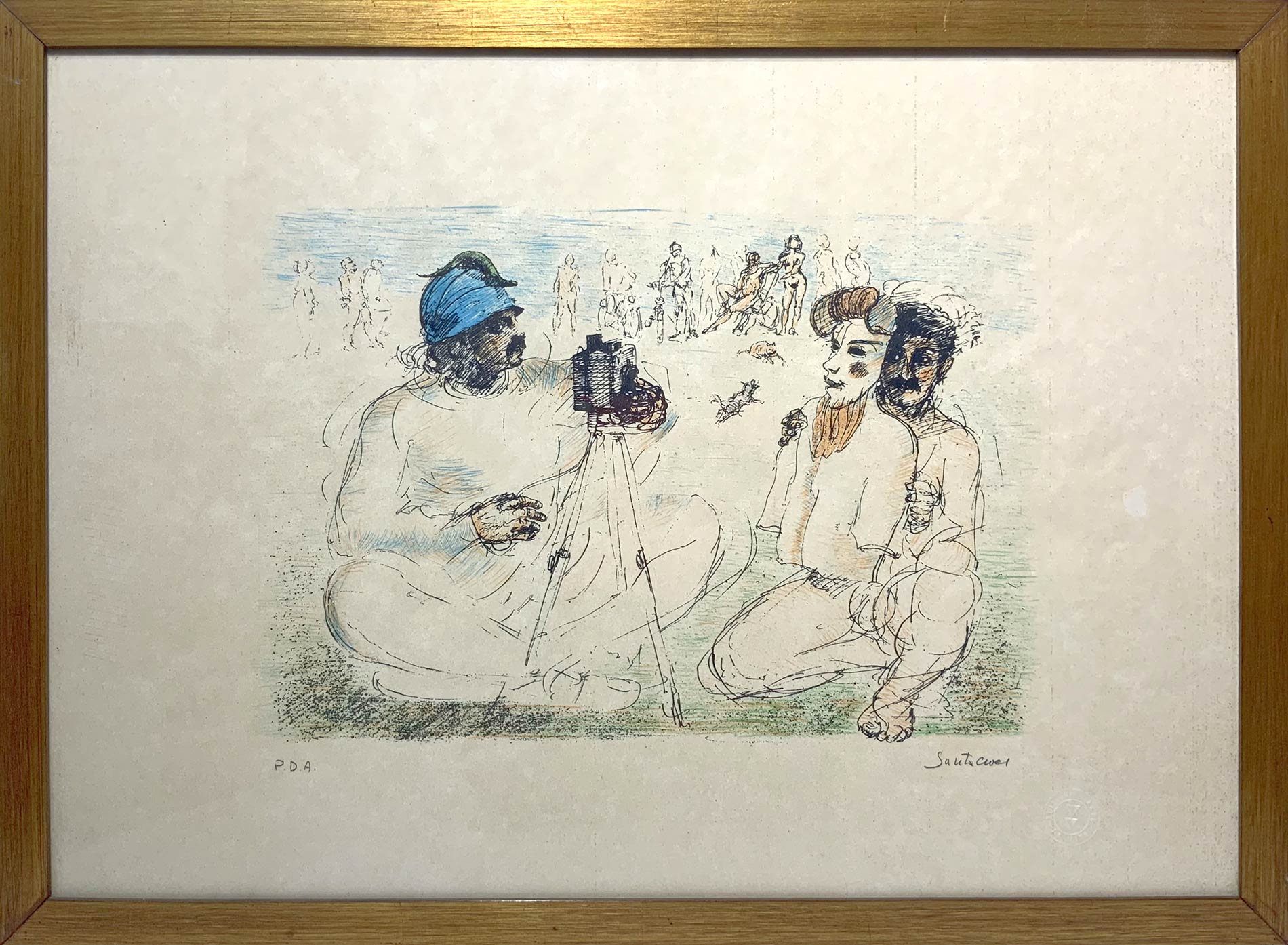 Gouache su carta raffigurante marina con personaggi. Cm 50x69. Firmato in basso a destra Santacroce.