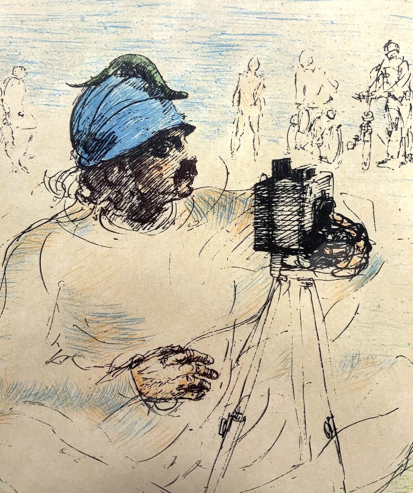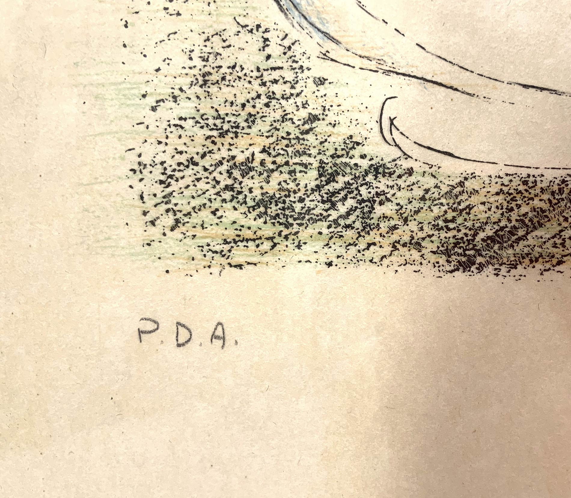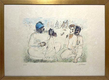 Gouache su carta raffigurante marina con personaggi. Cm 50x69. Firmato in...