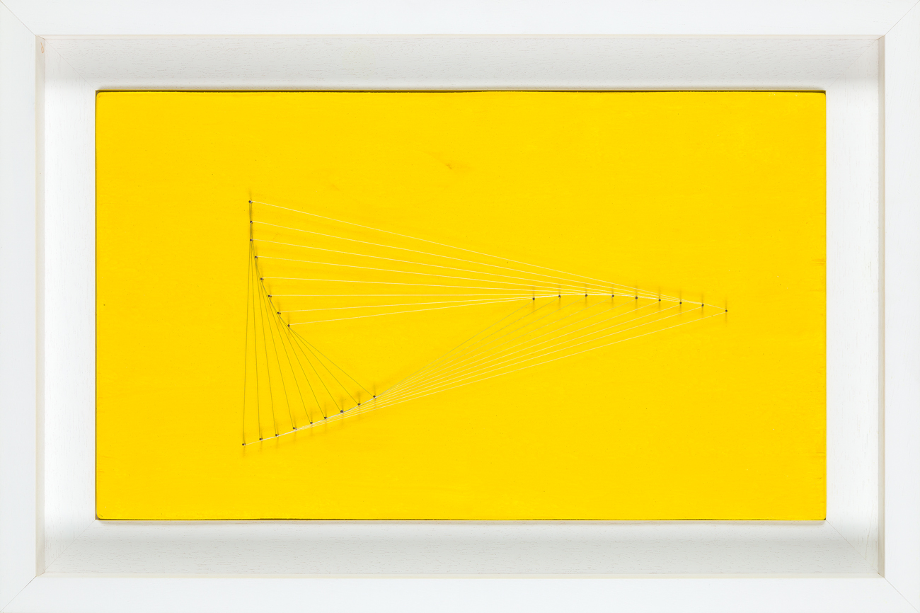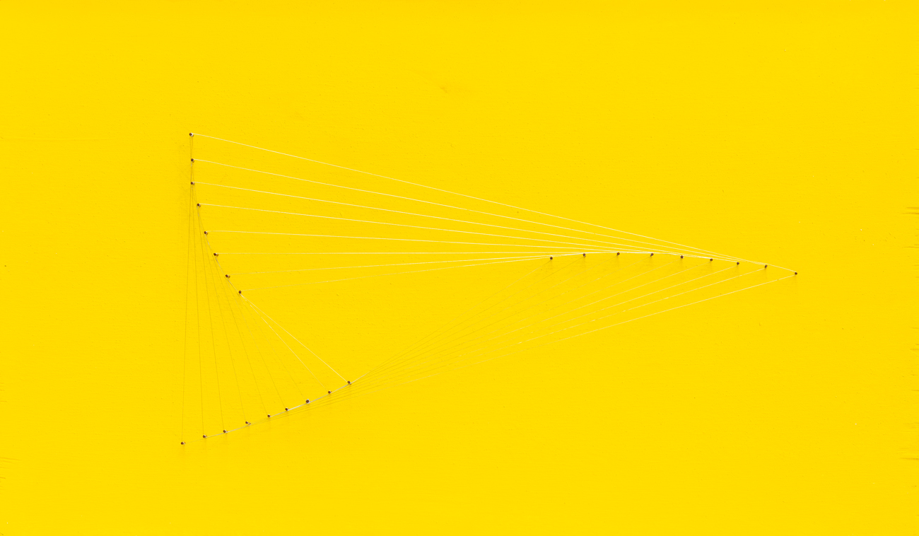 Tecnica mista, chiodi e filo di ferro su tavola dipinta