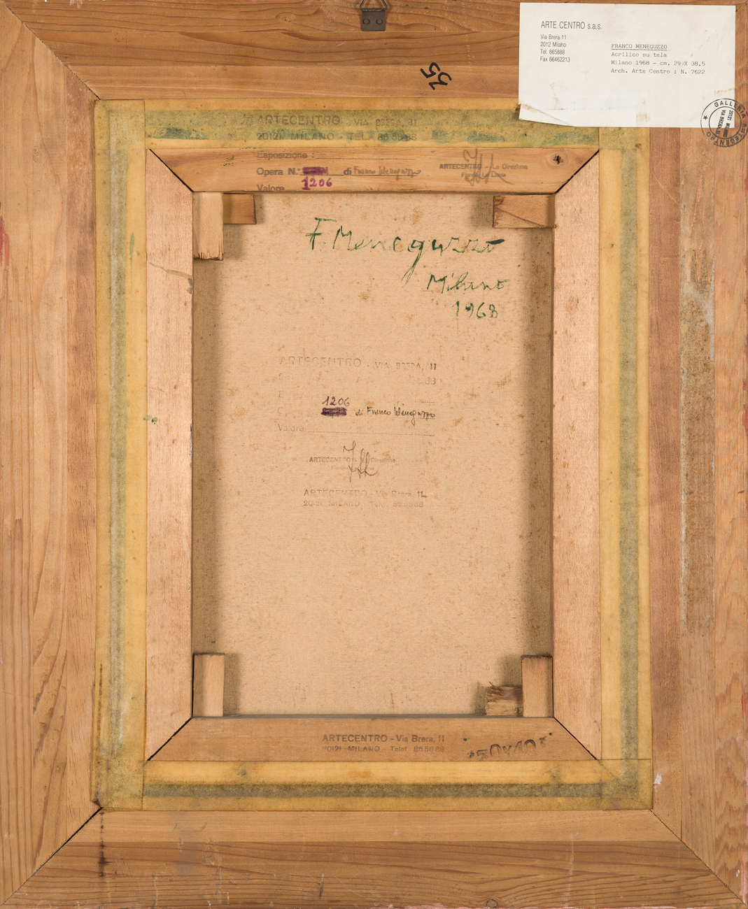 Etichetta e timbri della Galleria Artecentro (MI) al retro