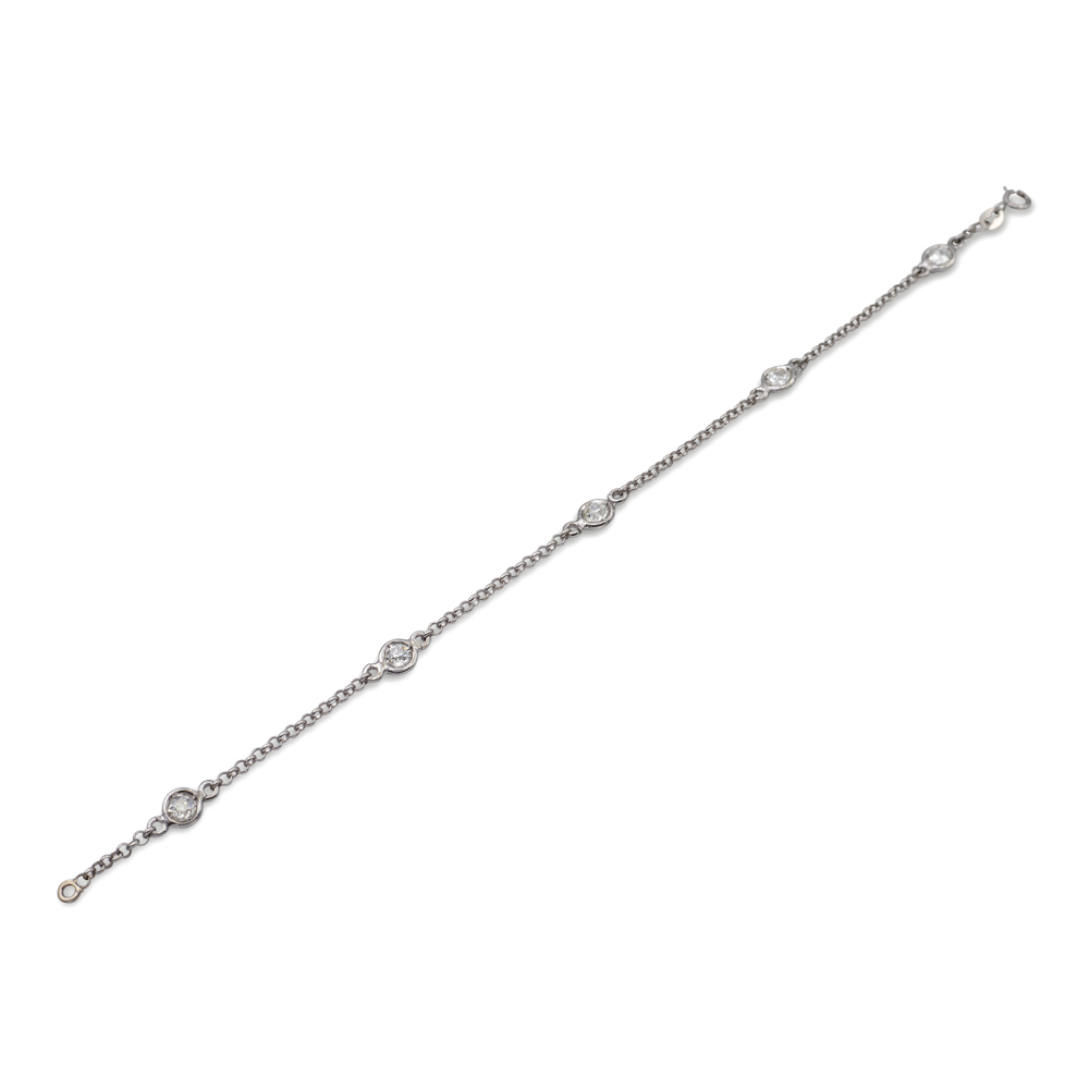 Bracciale in oro bianco 18kt con cinque diamantipeso 3,2 gr.taglio brillante ct 0,90 circa, lunghezza 17 cm.