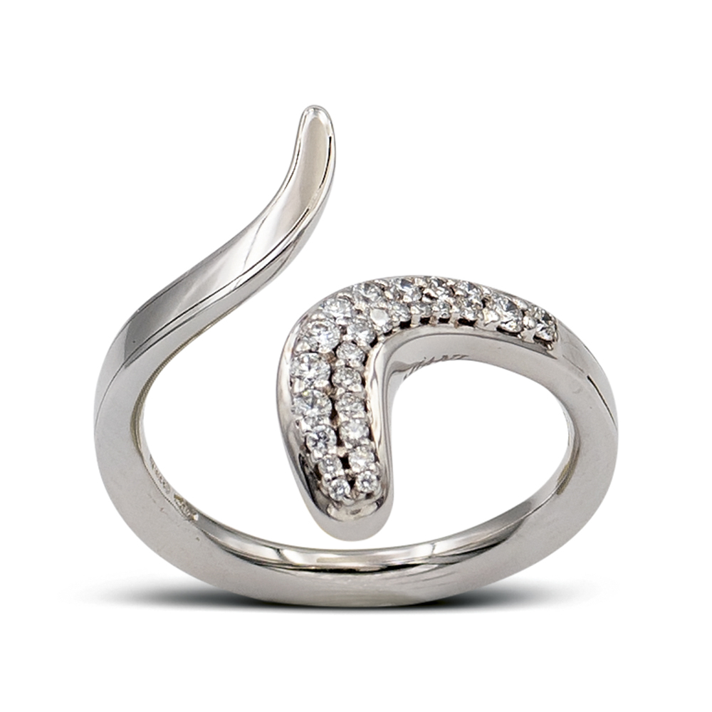 Damiani collezione "Eden" anellopeso 3,8 gr.in oro bianco 18kt con diamanti taglio brillante ct 0,24 circa, firmato all'interno del gambo, misura 13