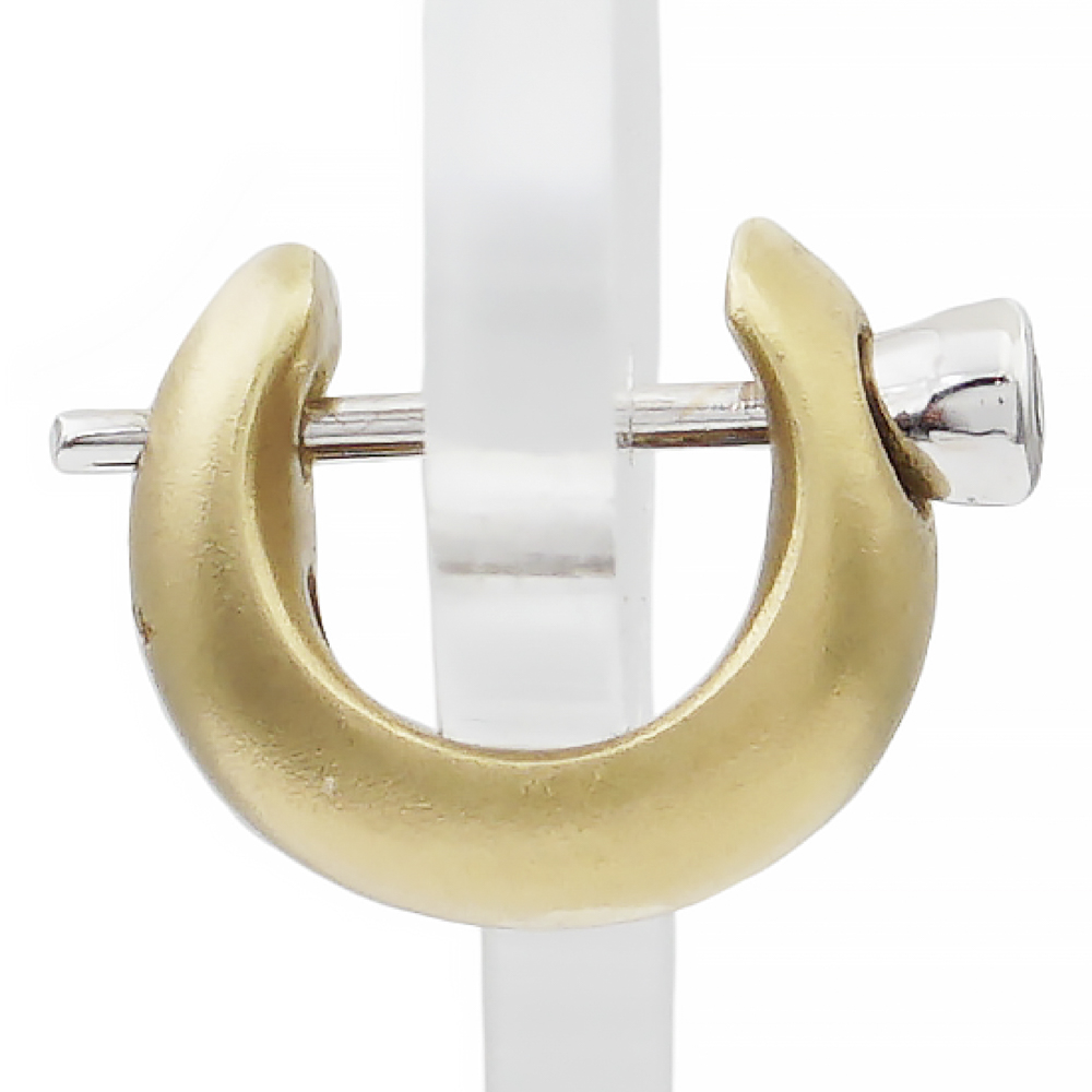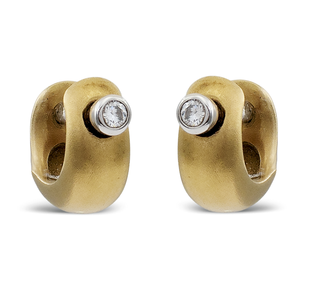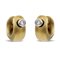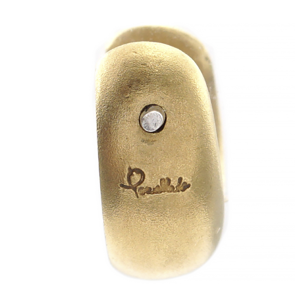 Pomellato collezione "Lucciole", orecchinipeso 7 gr.creole in oro giallo 18kt satinato e due diamanti taglio brillante ct 0,12 circa montati su oro bianco, firmato sul retro