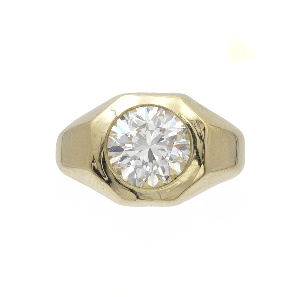 Bulgari, anello in oro giallo 18kt con un diamante ct 2,60peso 12,5 gr.taglio brillante, colore F - purezza VS2, firmato all'interno del gambo misura 14