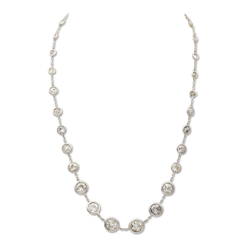 Collana in oro bianco 18kt e diamantipeso 5,8 gr.taglio brillante antico ct 8 circa, lunghezza 40 cm. regolabile